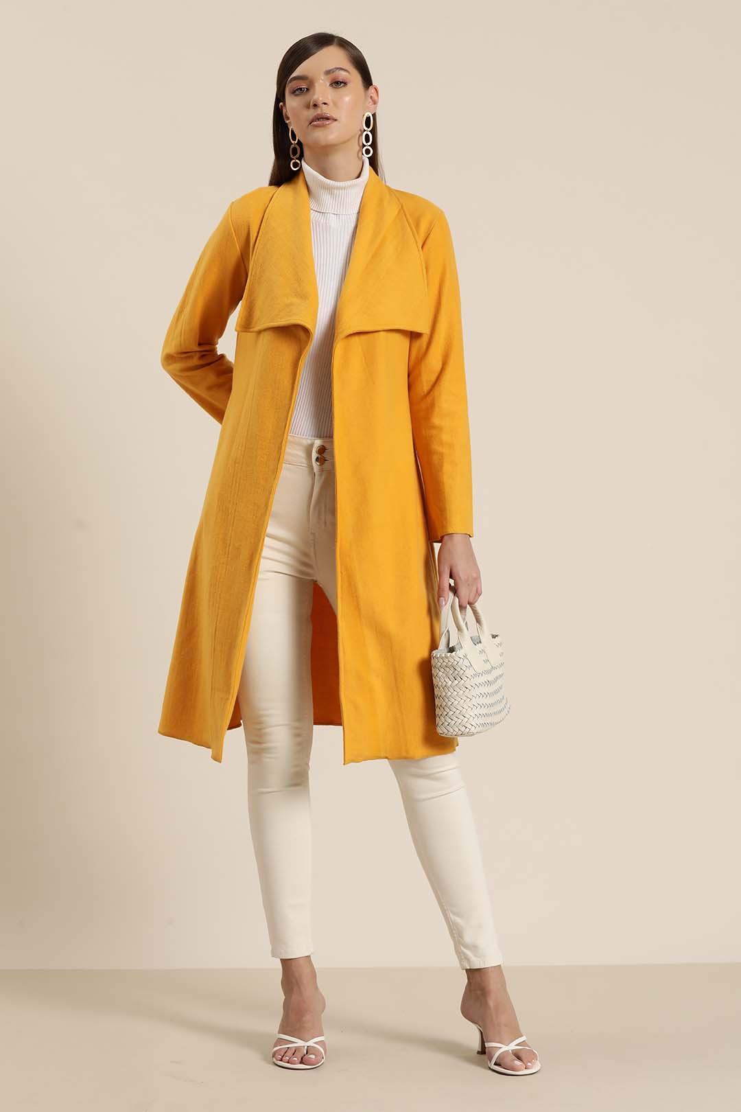 Bagatelle Drape Yellow Fleece Jacket Complete your contemporary look with an open-front long jacket