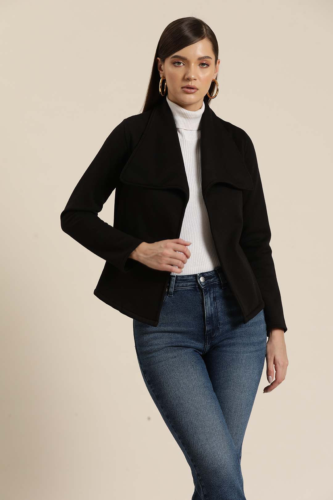 Bagatelle Drape Black Fleece Jacket Complete your contemporary look with an open-front jacket