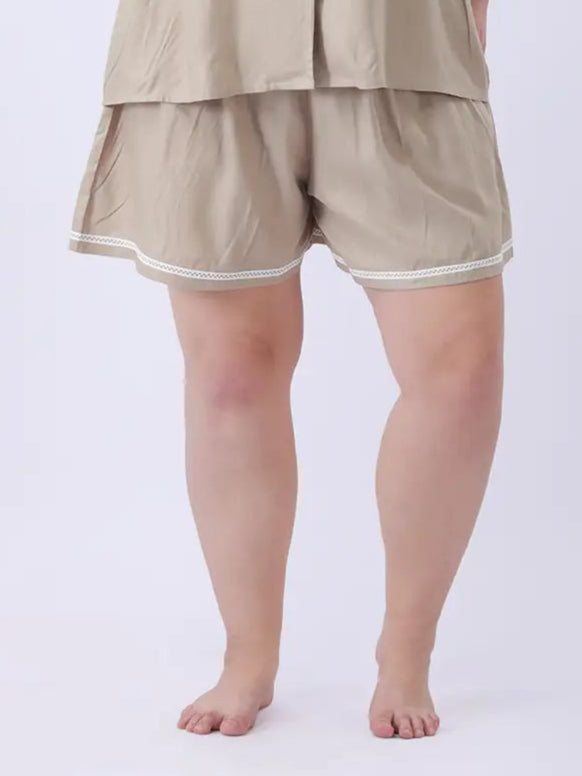Beige Rayon Loose Fit Shorts with Straight Hemline