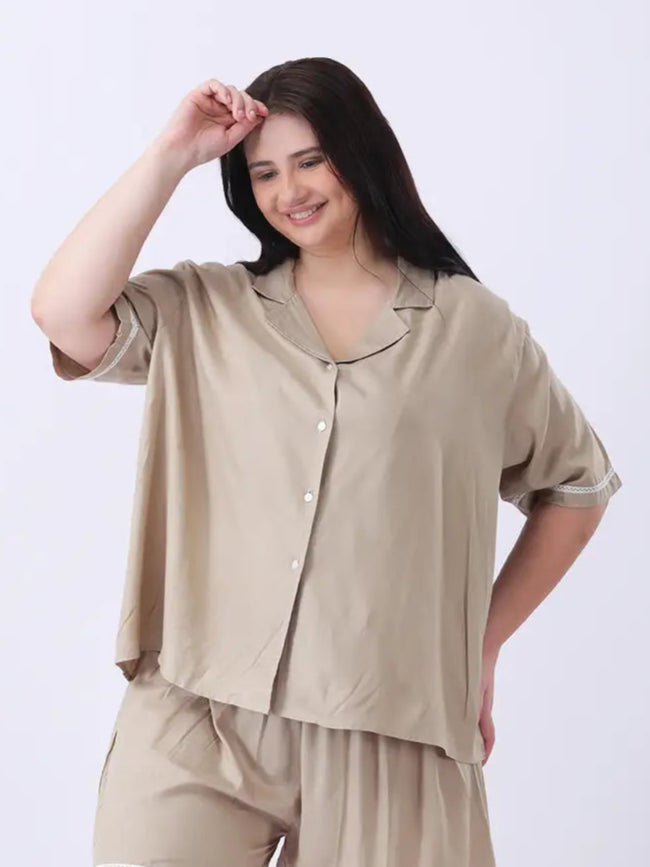 Beige Rayon Relaxed Fit Shirt with Curved Hemline
