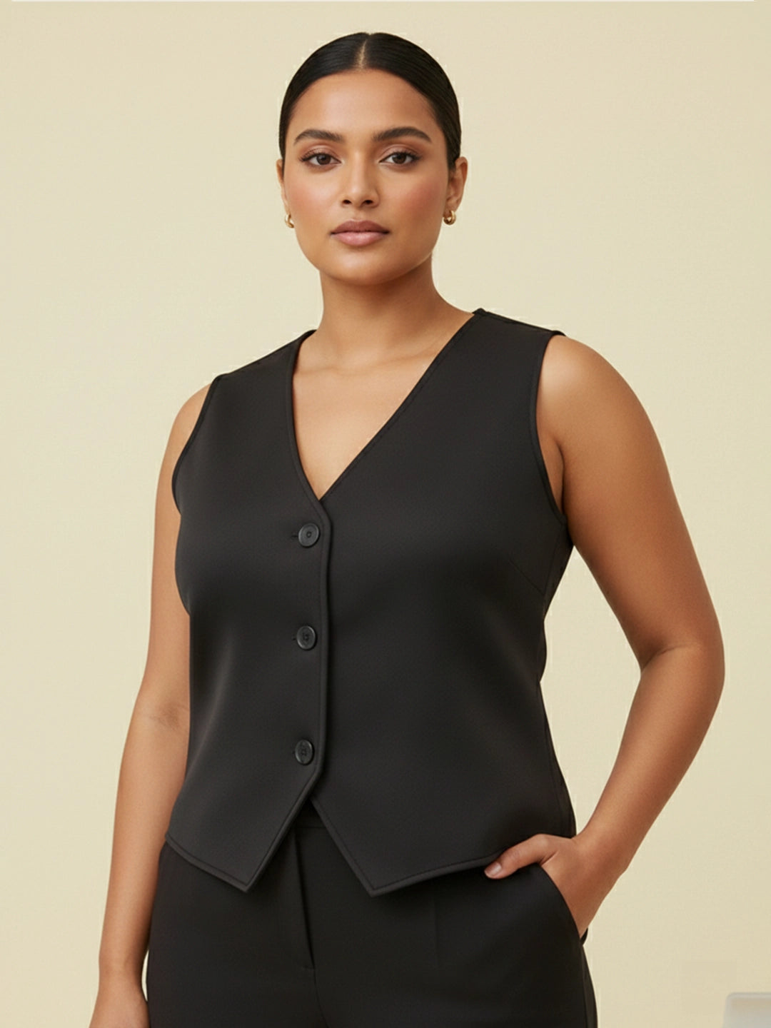 Black Moss Crepe Regular Fit Top with Curved Hemline
