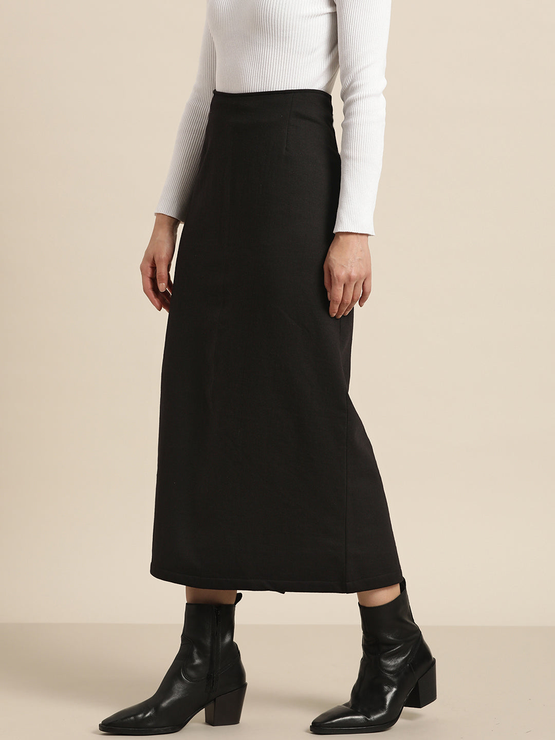 Blue Fleece Regular Fit Skirt with Straight Hemline