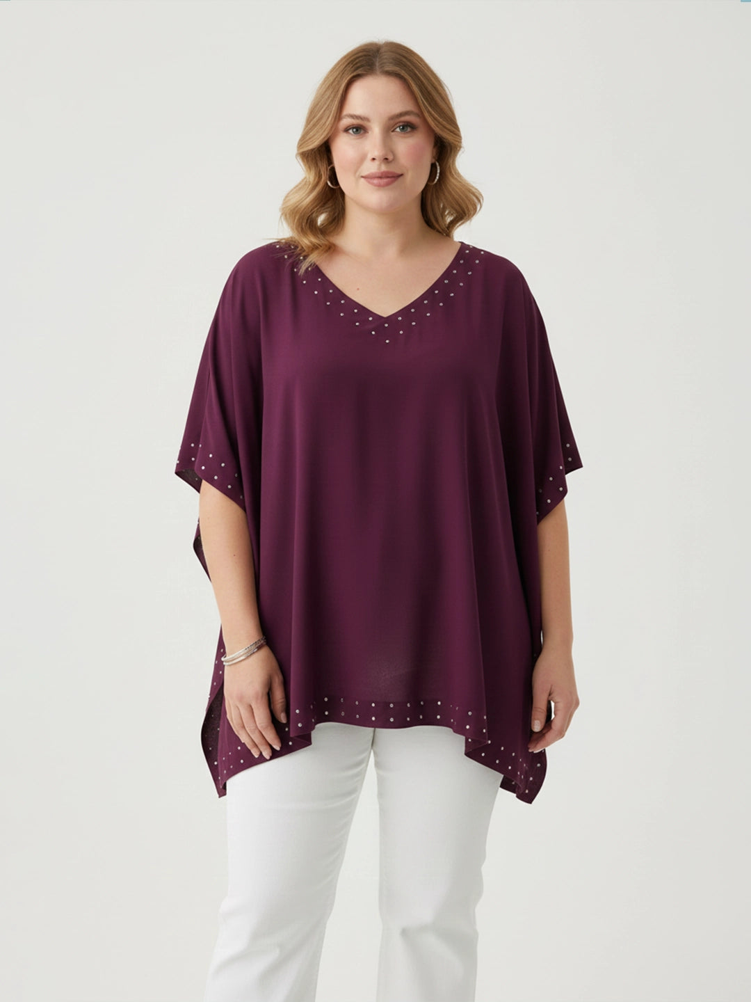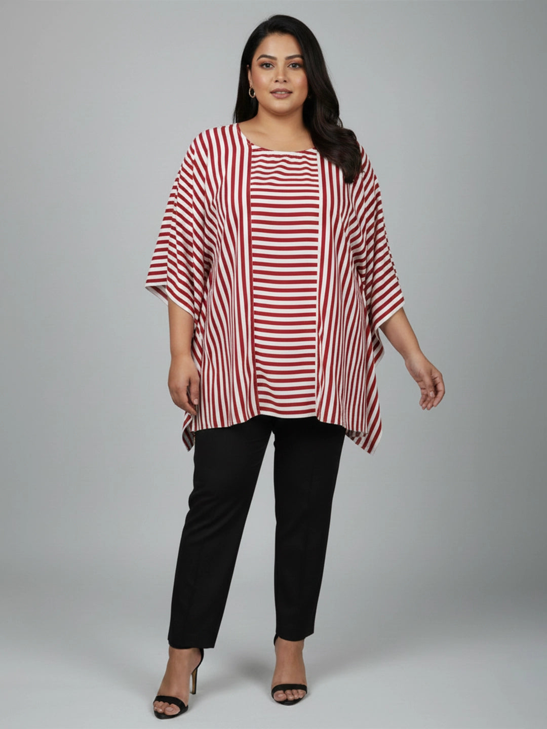 Wine French Crepe Relaxed Fit Kaftan with Straight Hemline
