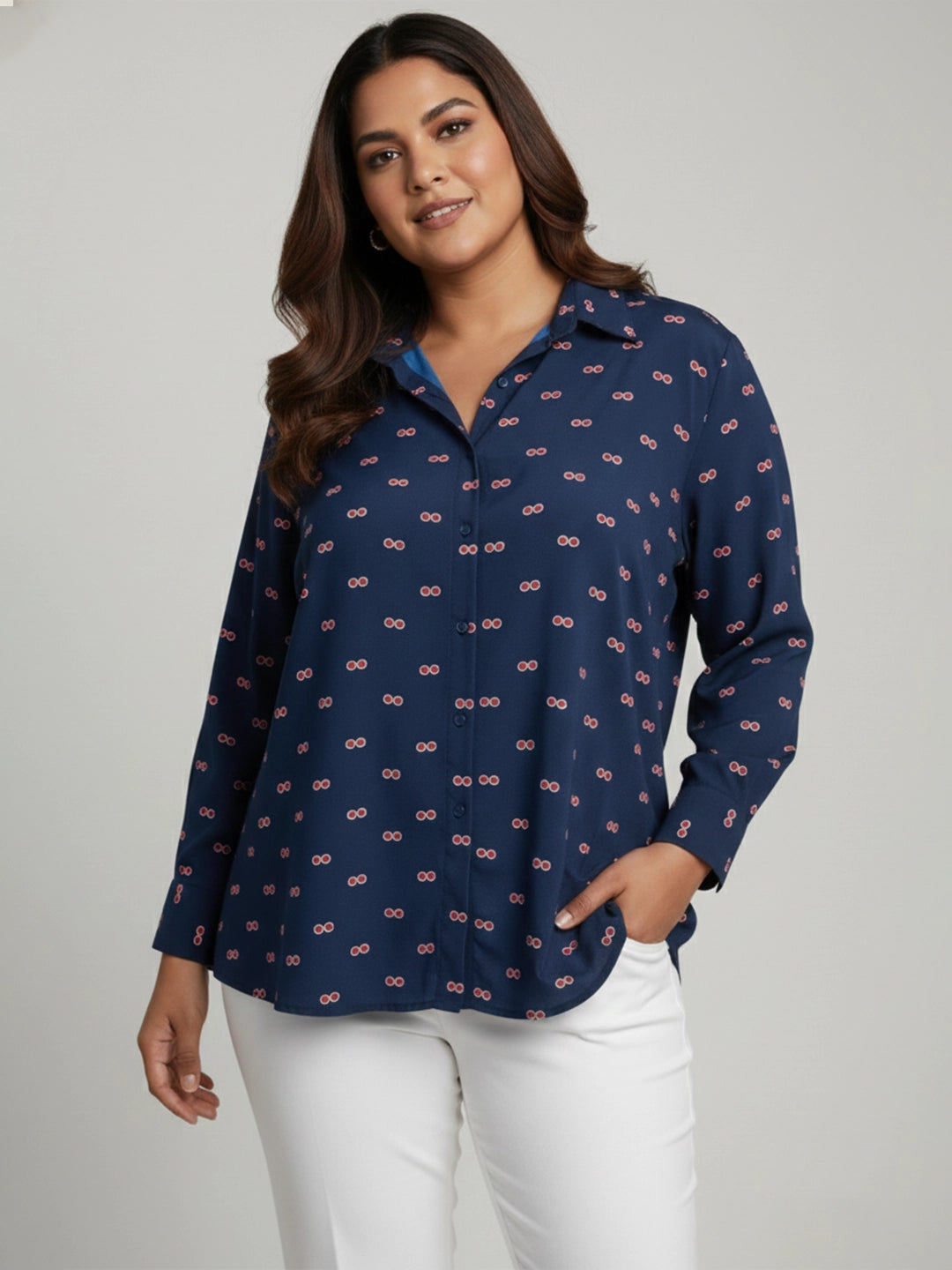 Navy Crepe Regular Fit Shirt with Curved Hemline