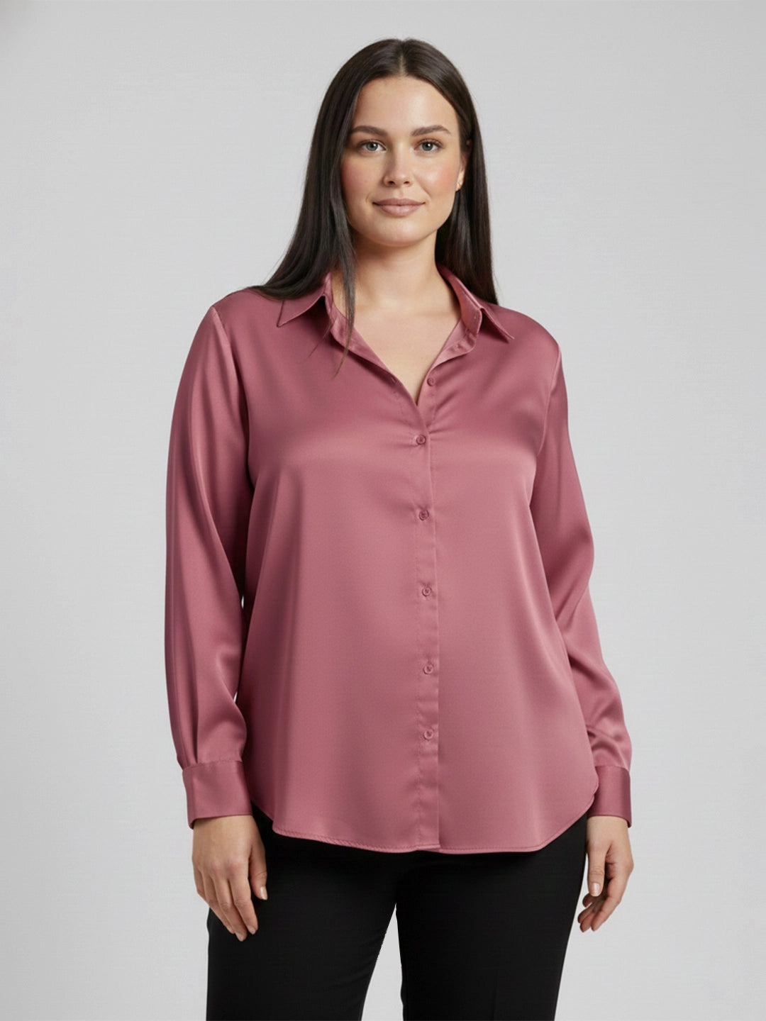Mauve Satin Regular Fit Shirt with Curved Hemline