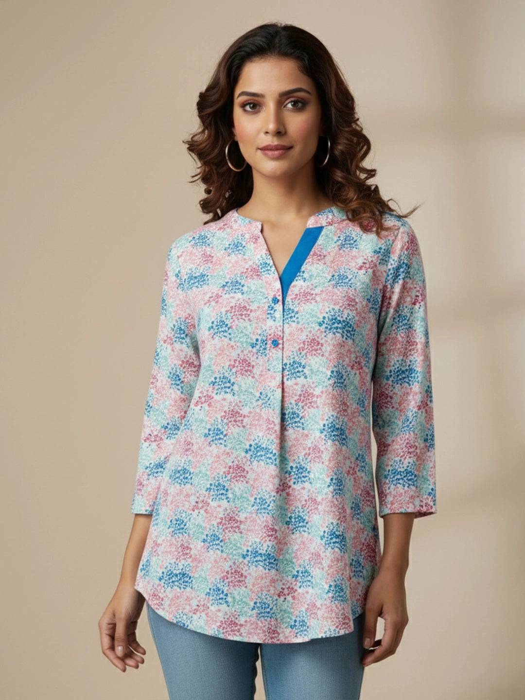 Blue Crepe Regular Fit Shirt with Curved Hemline