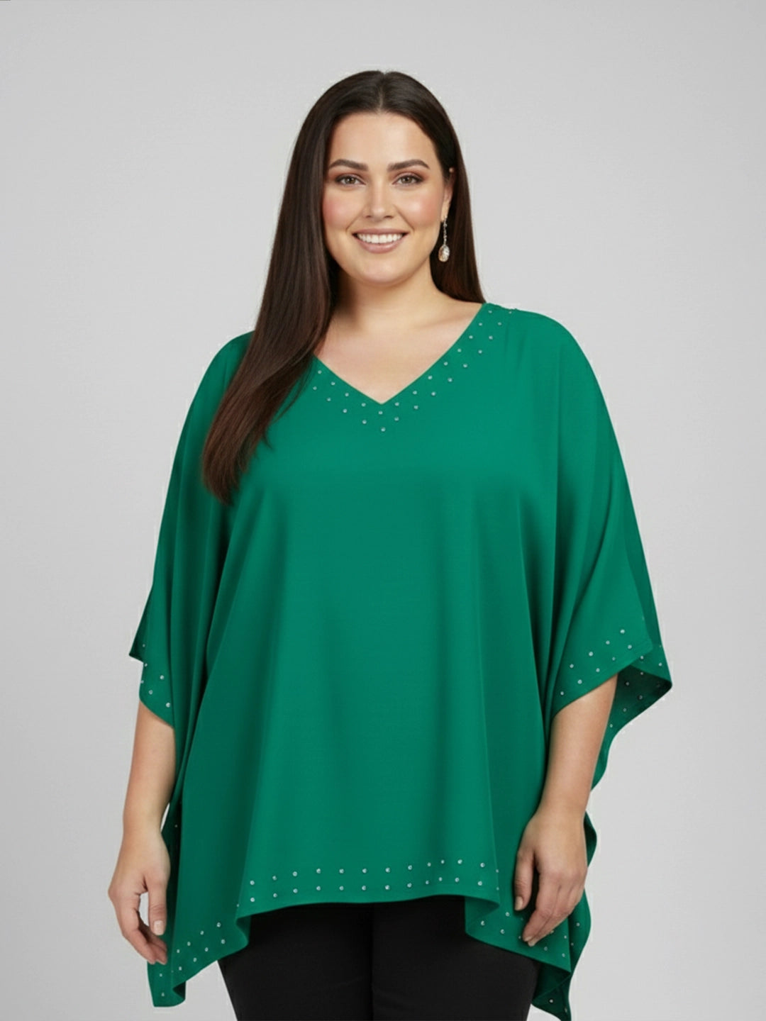 Green Silk Blend Loose Fit Kaftan with Asymmetric Hemline