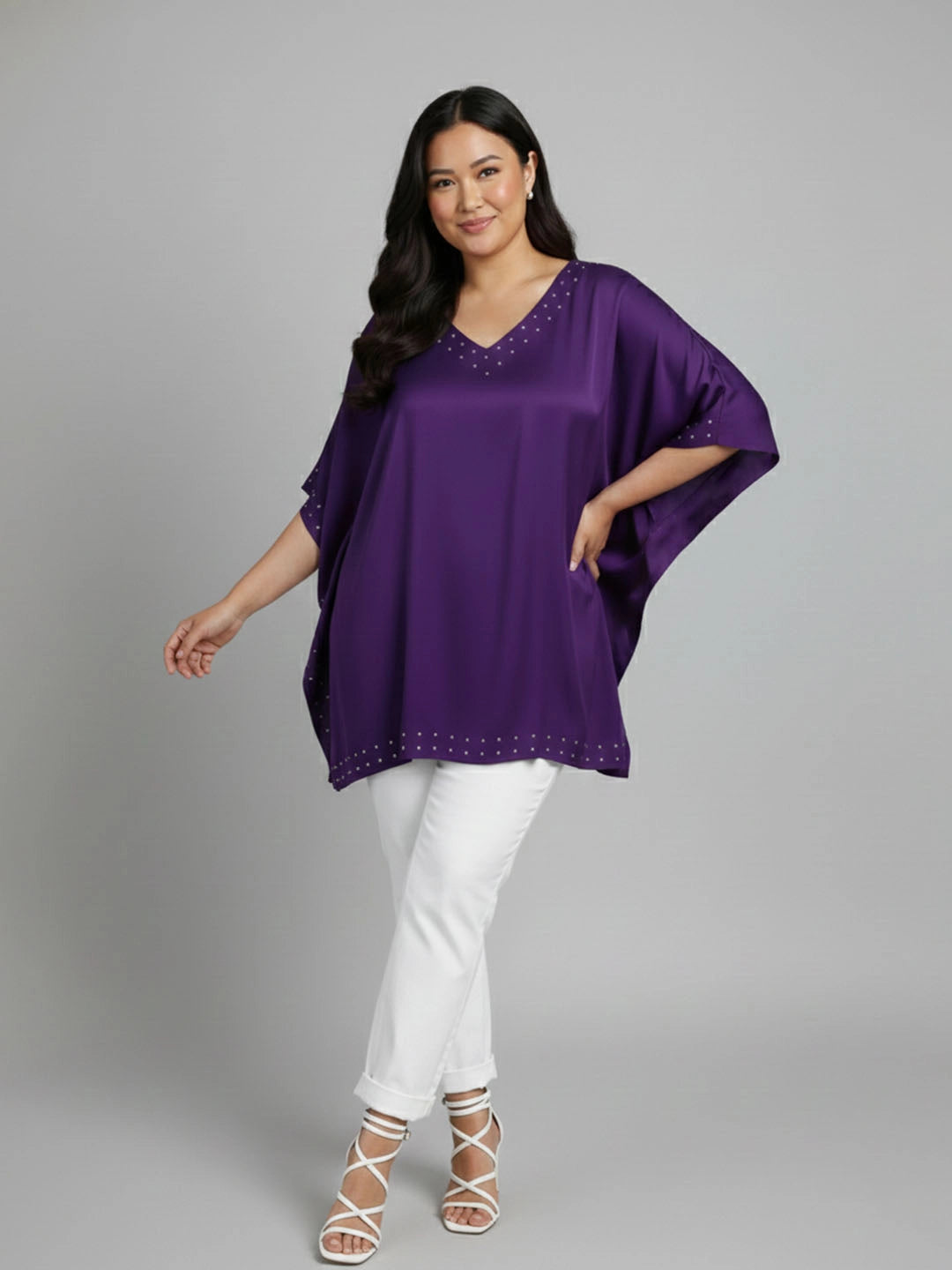 Purple French Crepe Relaxed Fit Kaftan with Straight Hemline