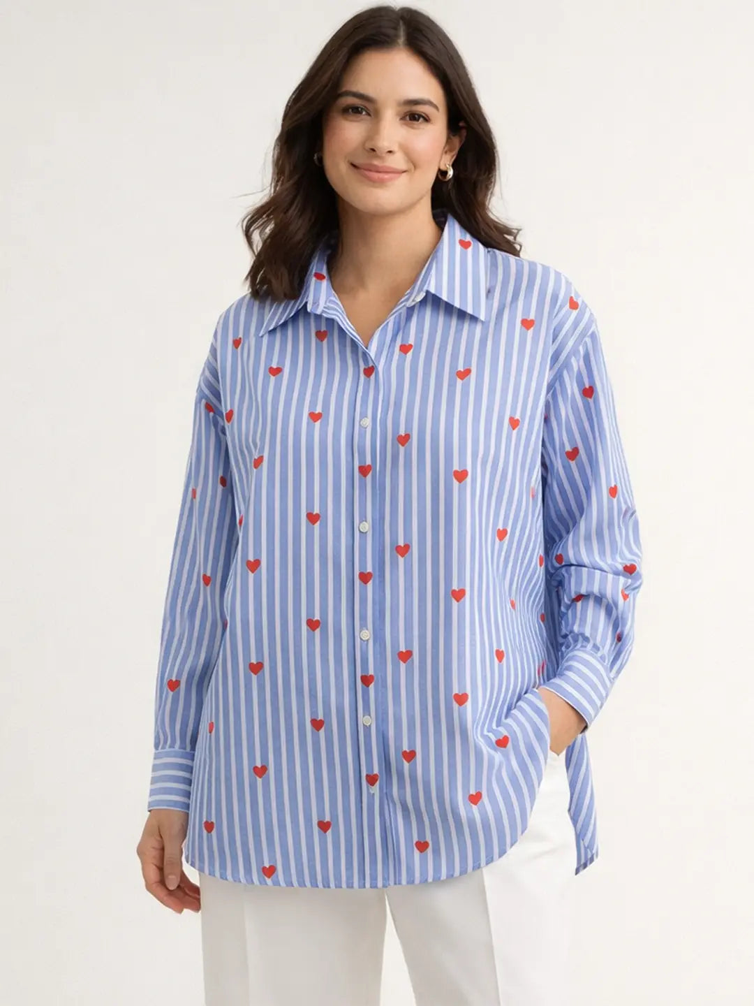 Blue stripe Heart printed shirt