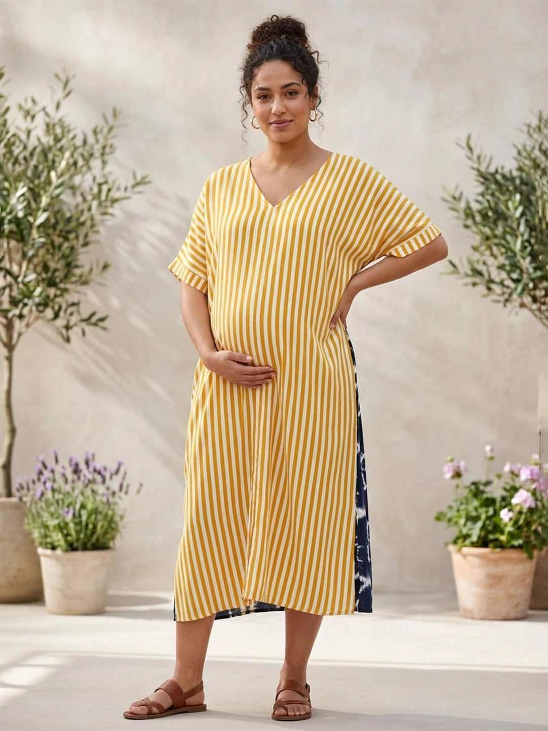 Yellow stripe oversize cotton dress