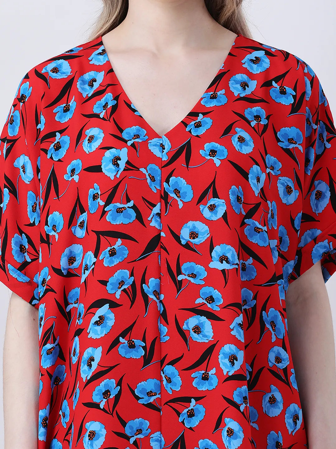 Red Georgette Relaxed Fit Kaftan with Curved Hemline