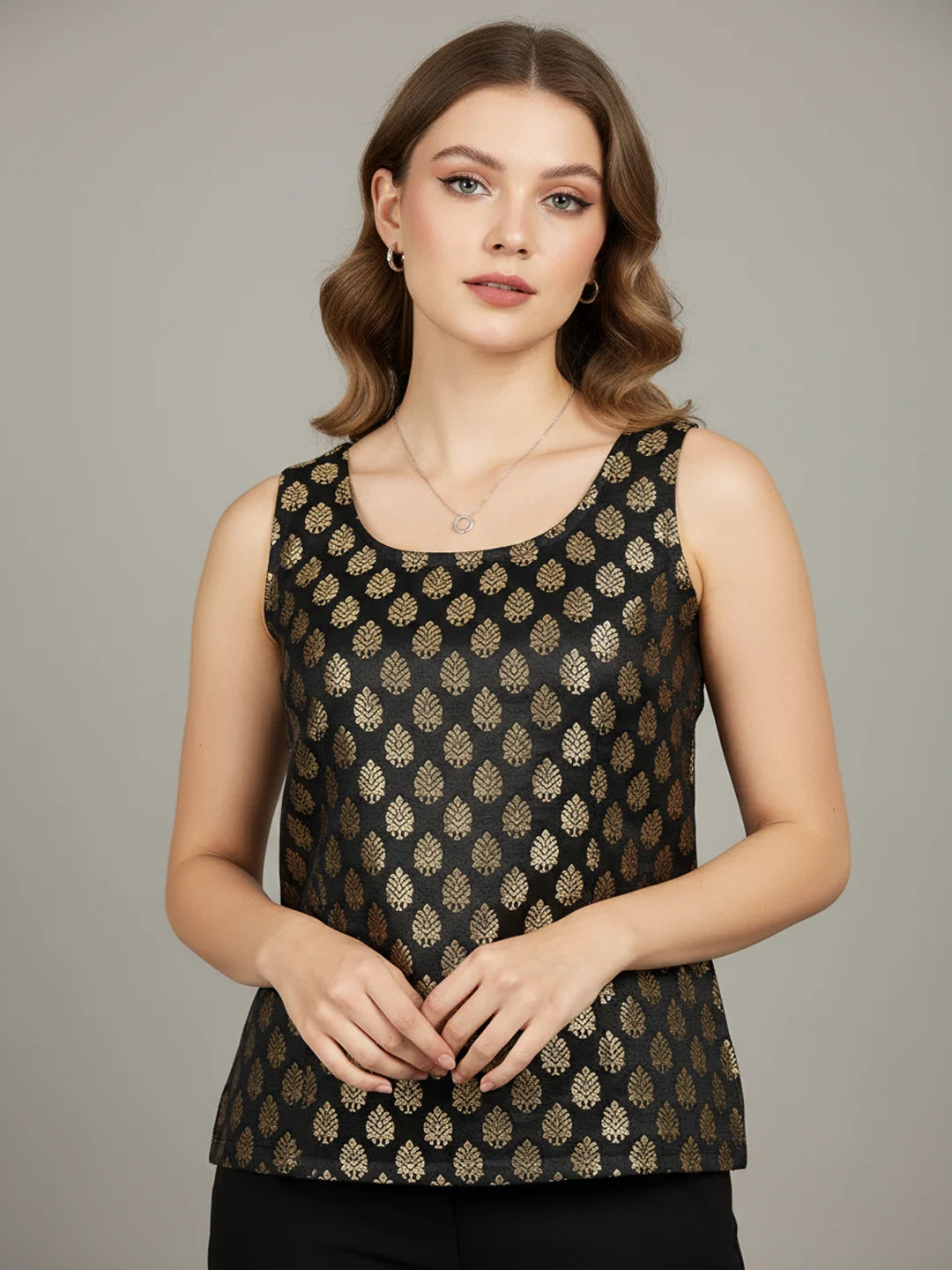 Black Moss Crepe Regular Fit Top with Straight Hemline