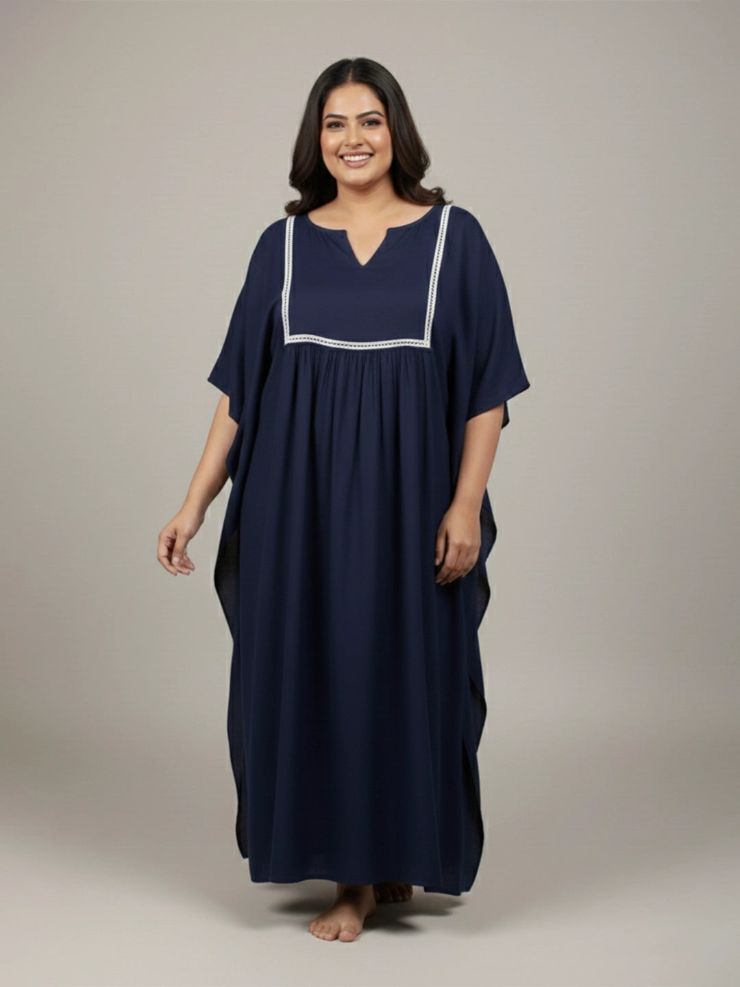 Navy French Crepe Relaxed Fit Kaftan with Straight Hemline
