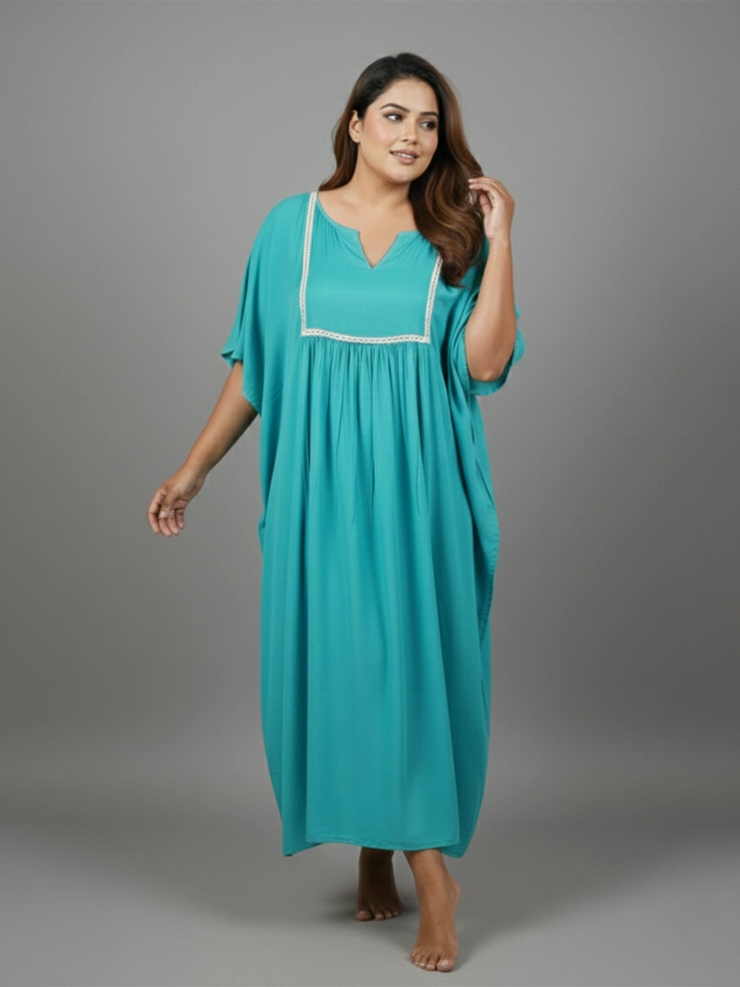 Turquoise Rayon Relaxed Fit Kaftan with Straight Hemline