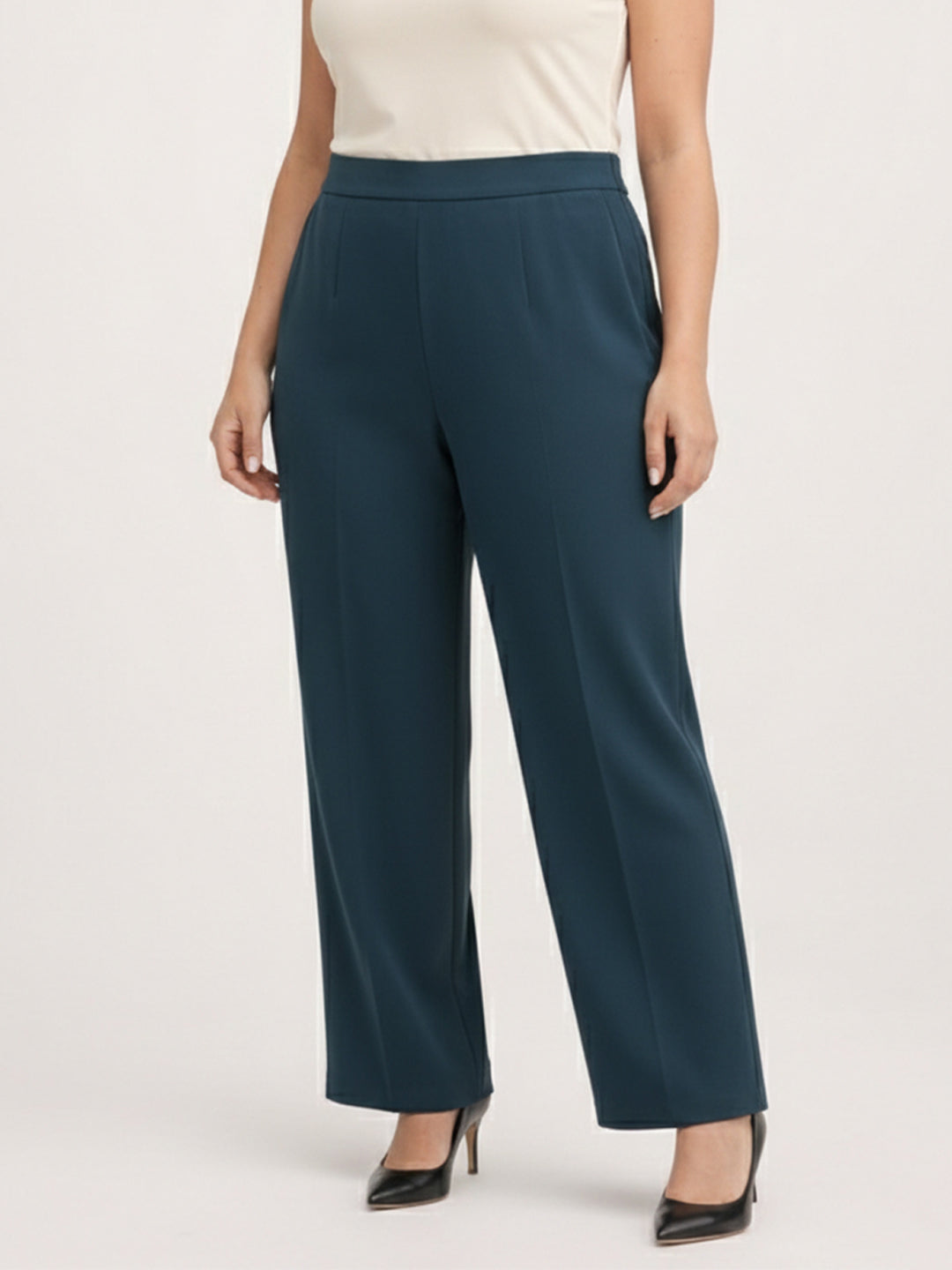 Teal Lycra Regular Fit Pant with Straight Hemline