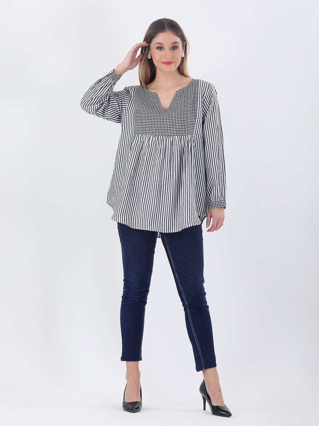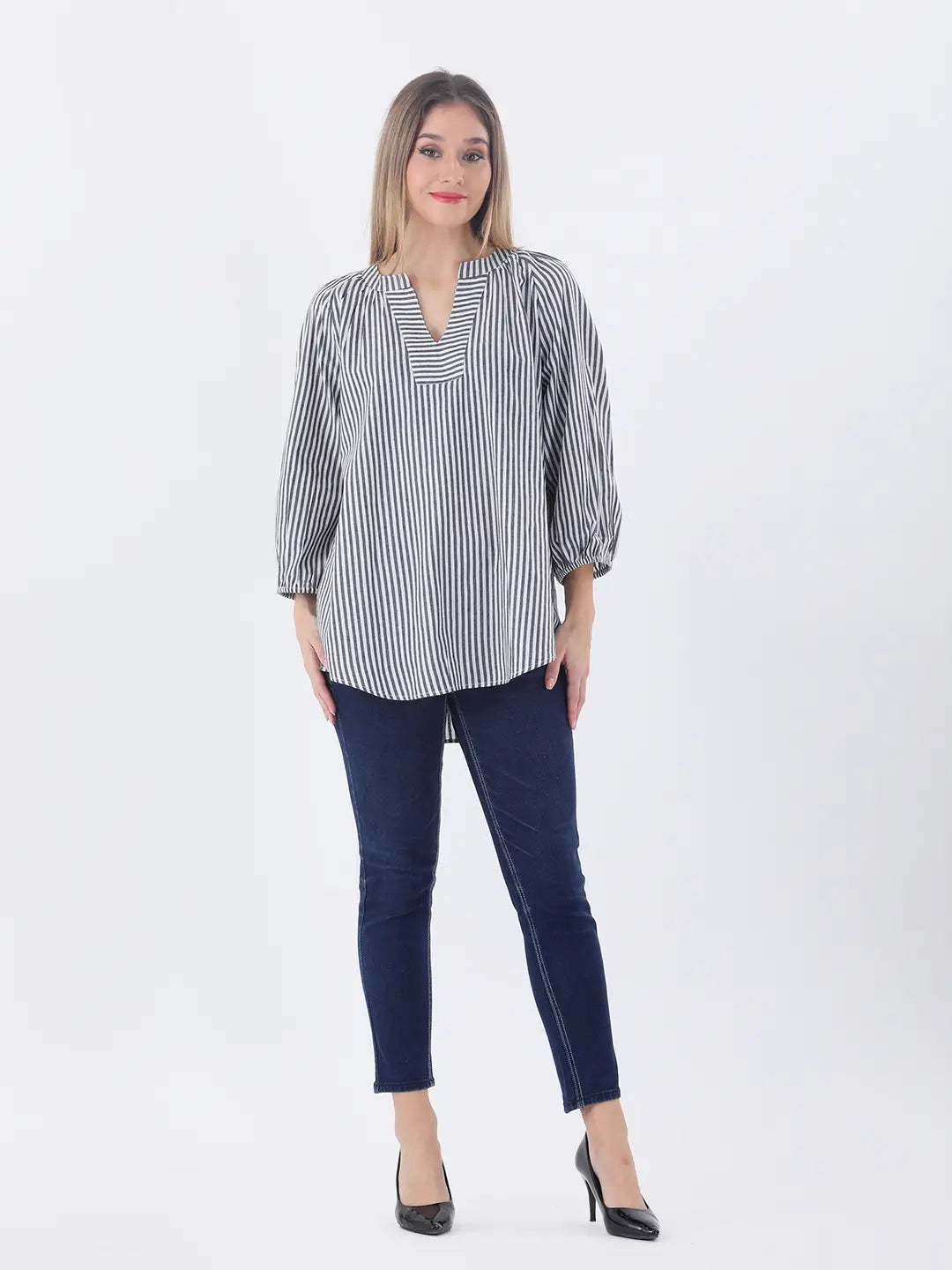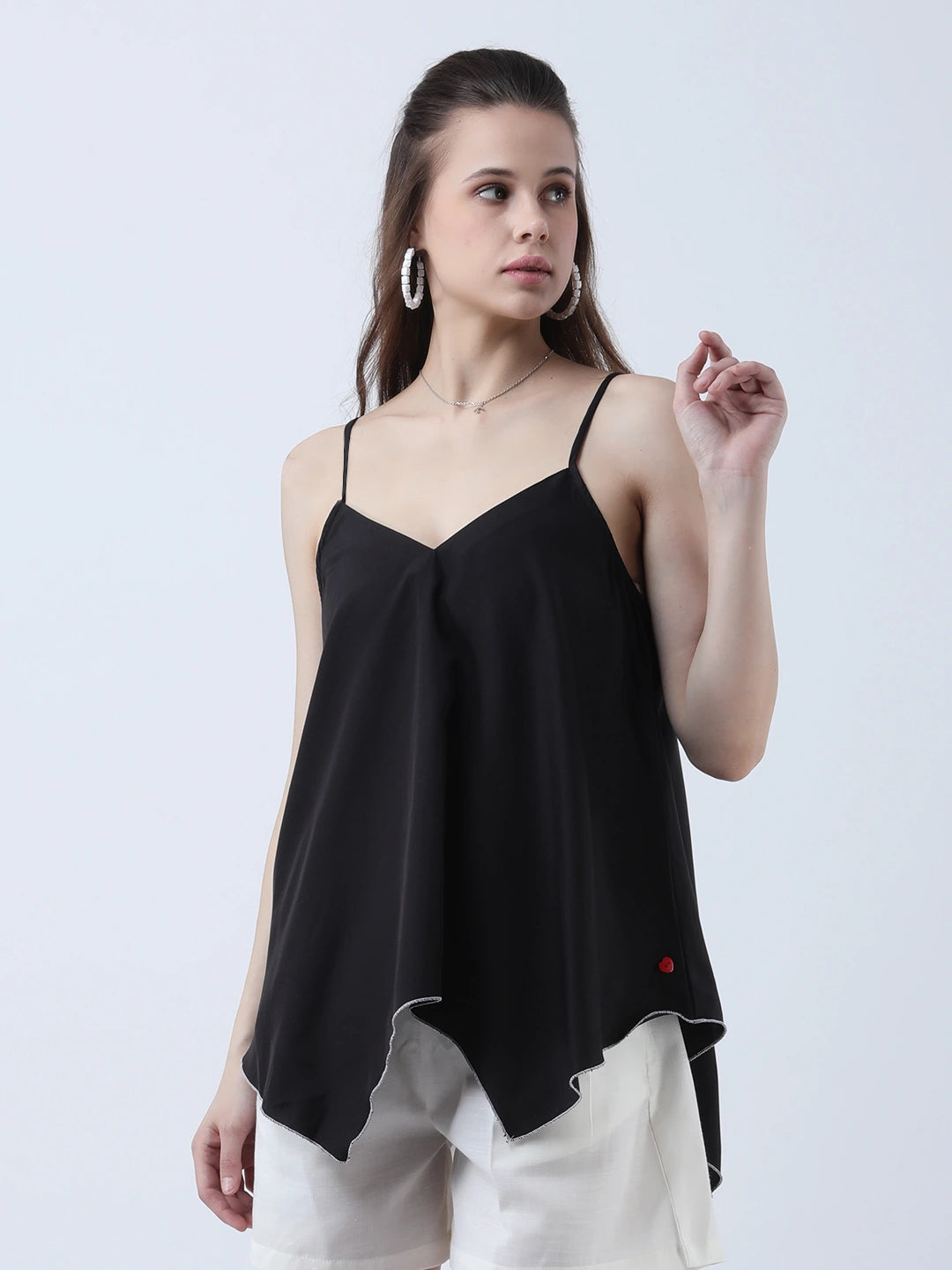 Black Crepe Loose Fit Top with Asymmetric Hemline