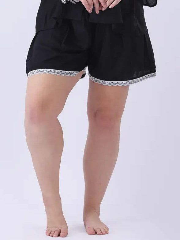Black Rayon Loose Fit Shorts with Straight Hemline
