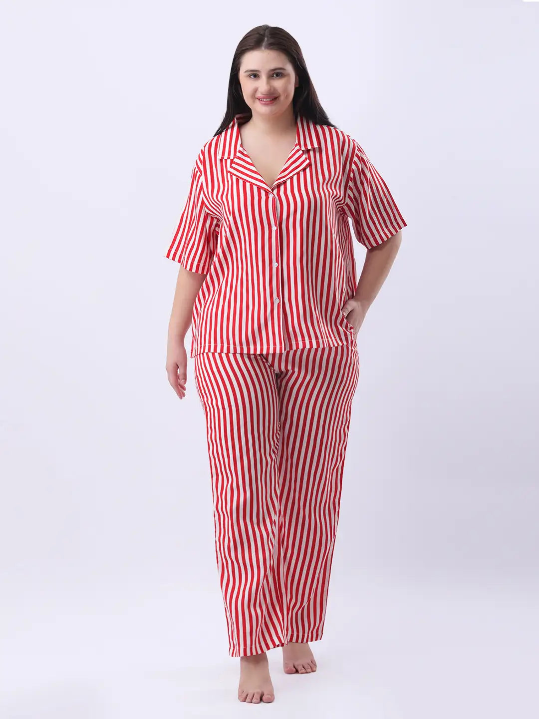 Red Rayon Loose Fit Shirt with Curved Hemline