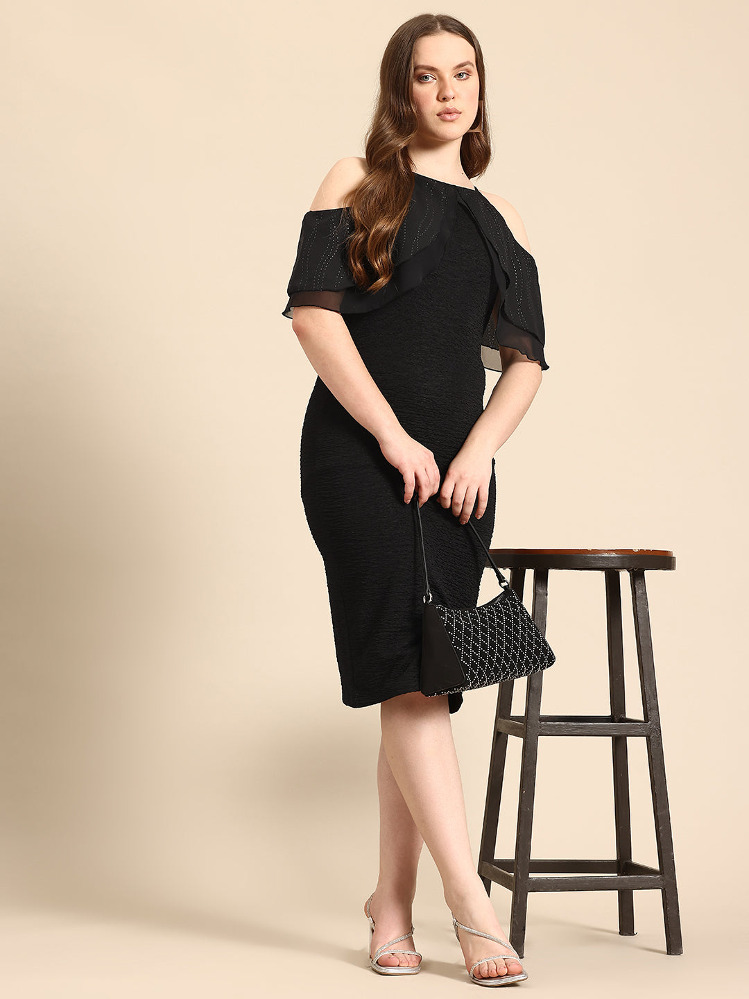 Black bodycon dress with Foil print ruffles