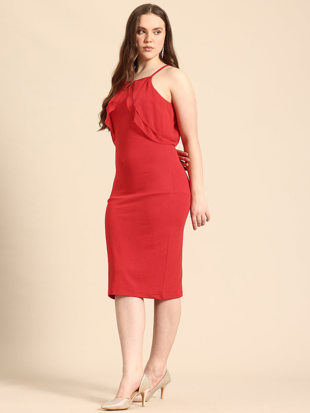 Red bodycon frill dress