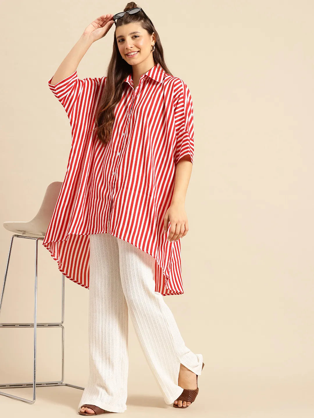 Red stripe oversized shirt