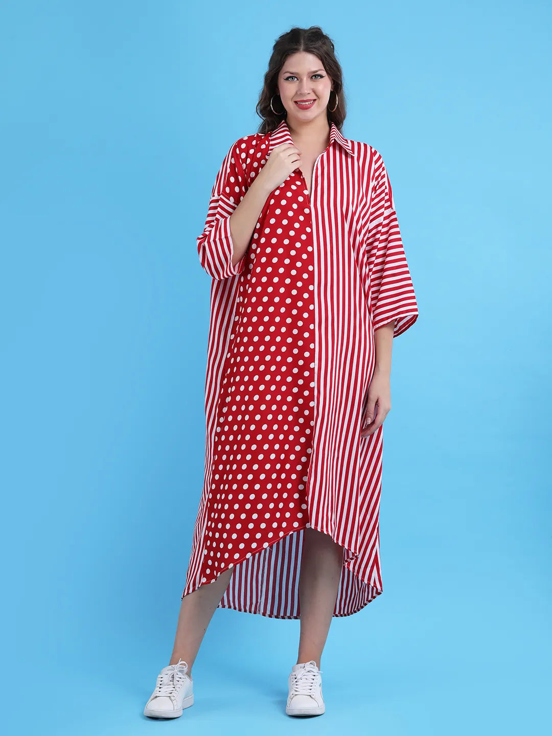 Red Polka & Stripe Oversized Dress