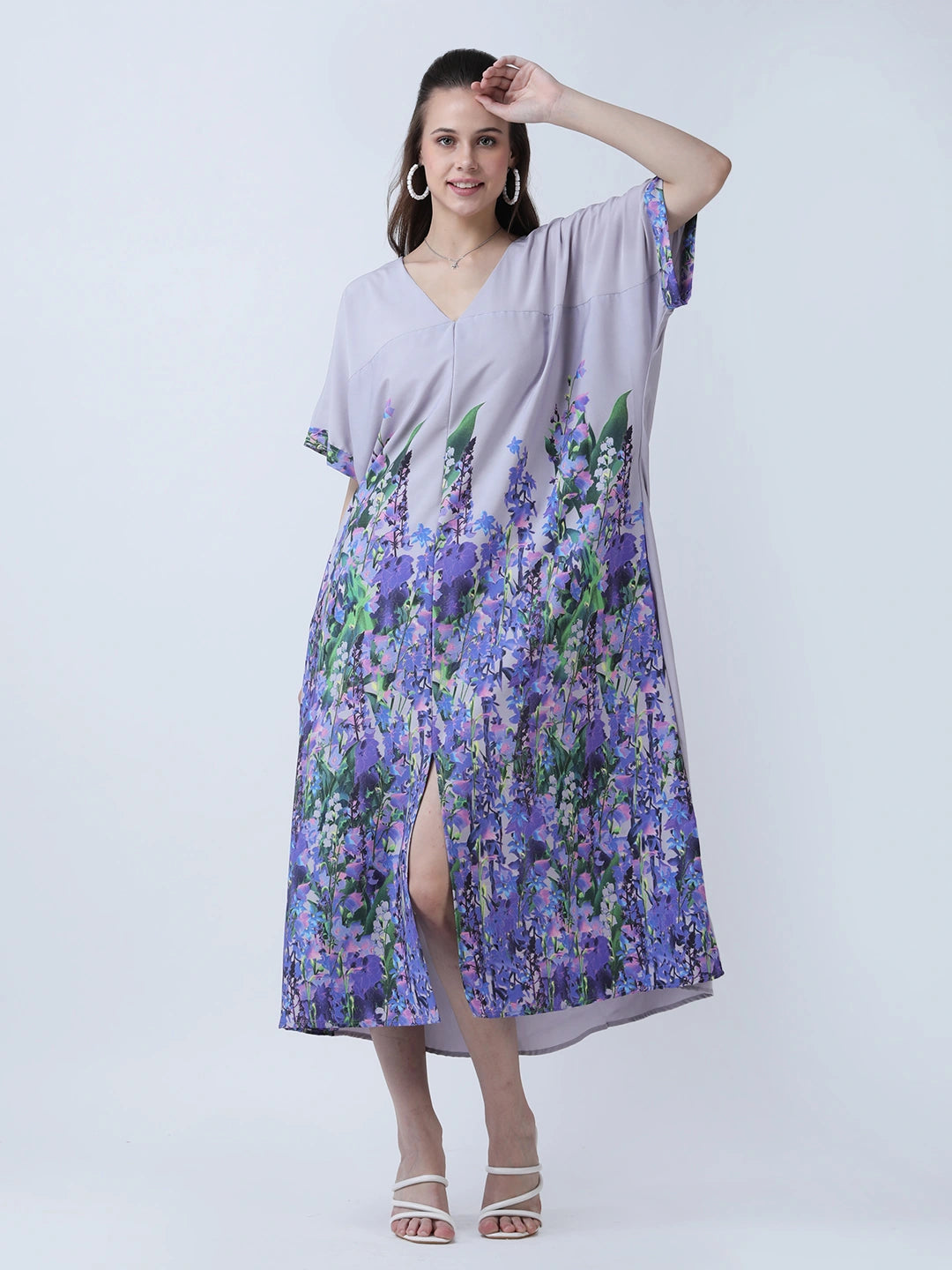 Floral print loose fit dress with front slit