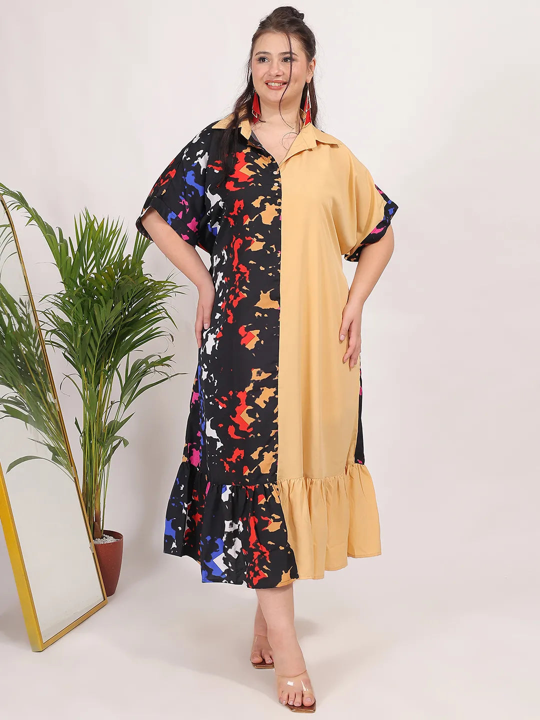 Contrast printed dress with ruffle hem