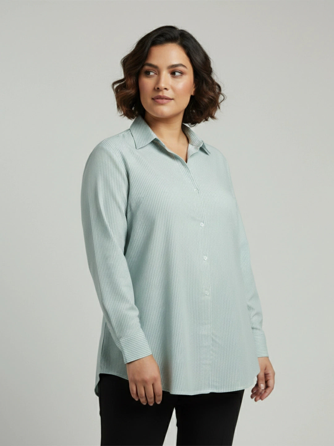 Mint Green Crepe Loose Fit Shirt with Curved Hemline