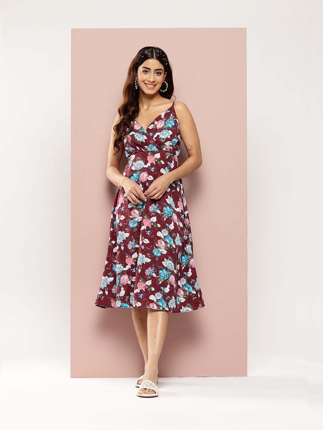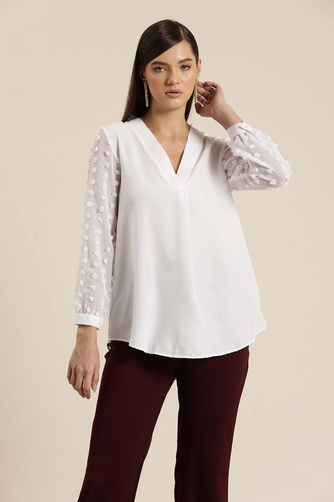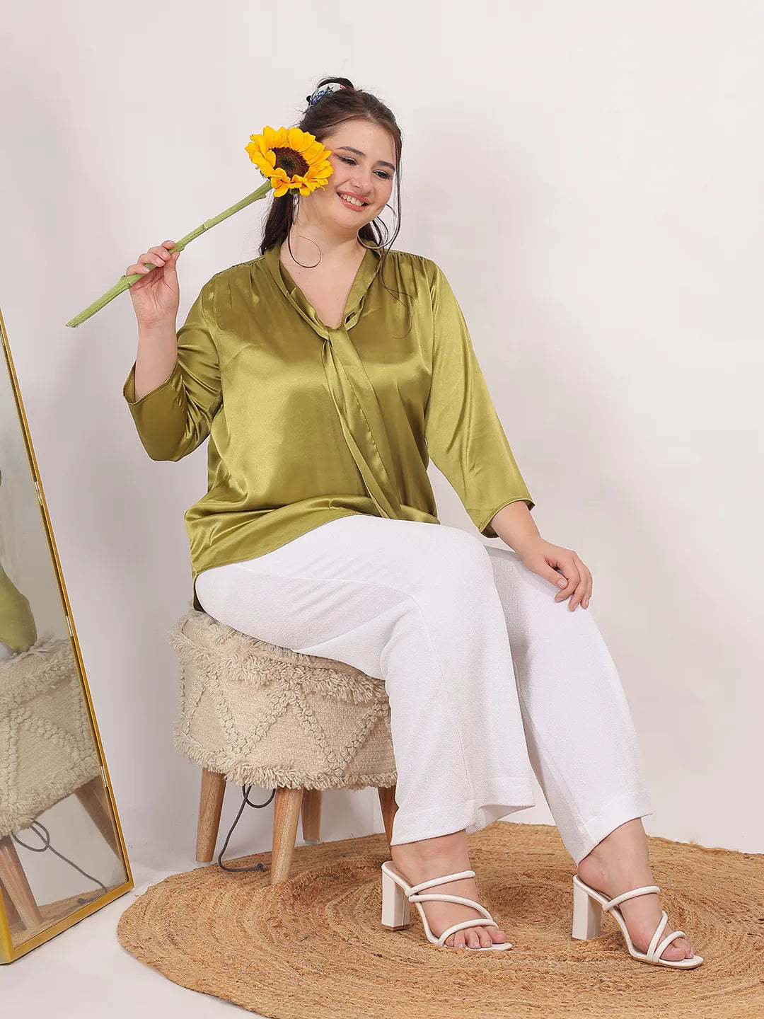 Qurvii Womens Maroon silk party top with v-neck and bell sleeves,