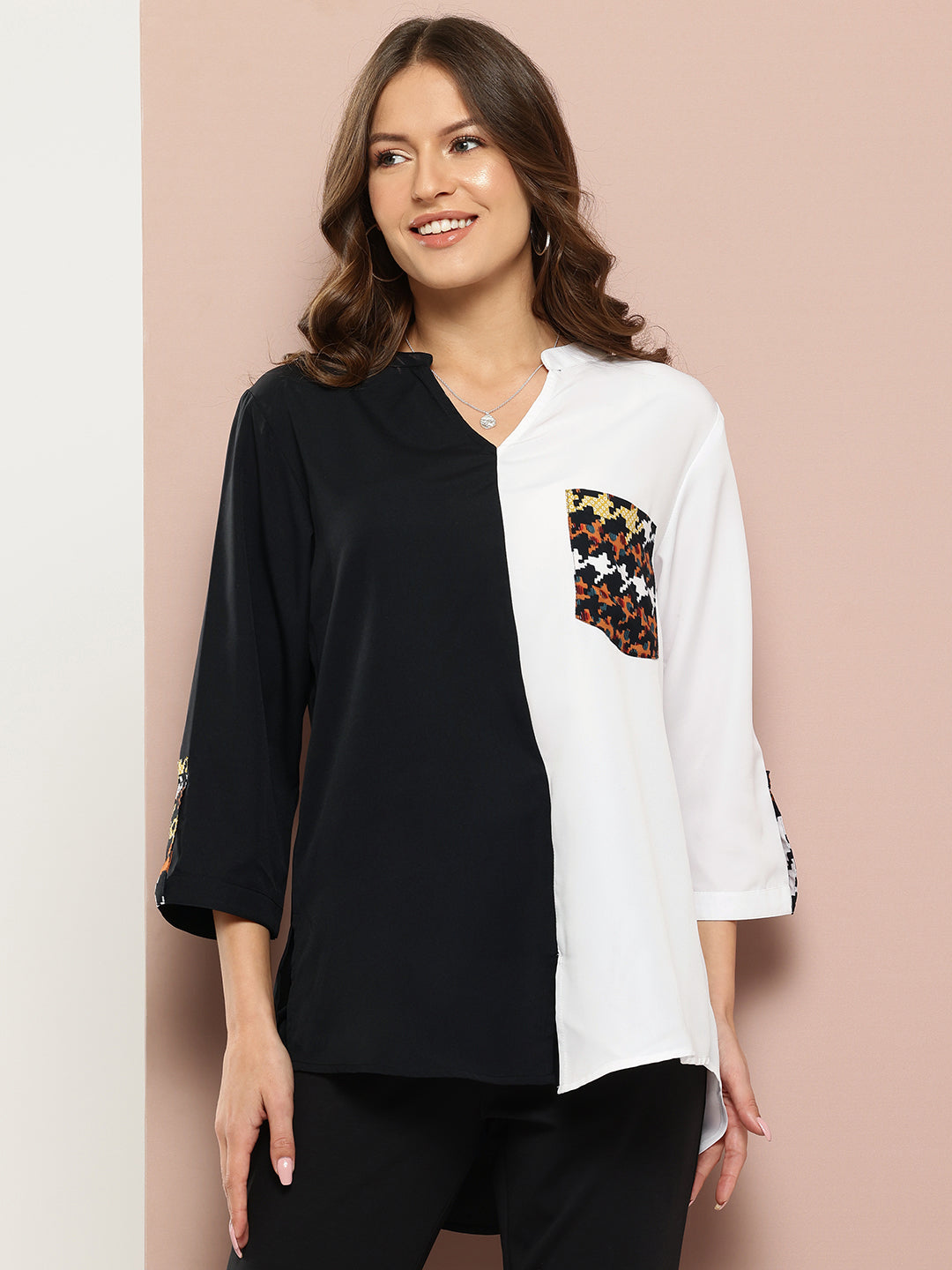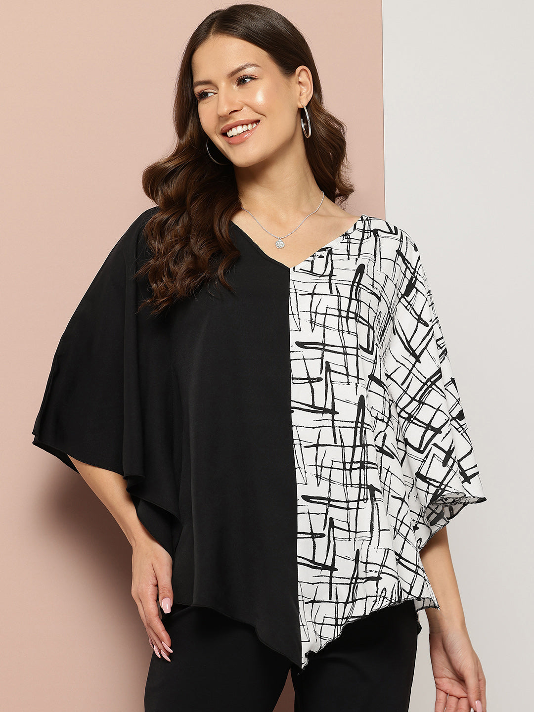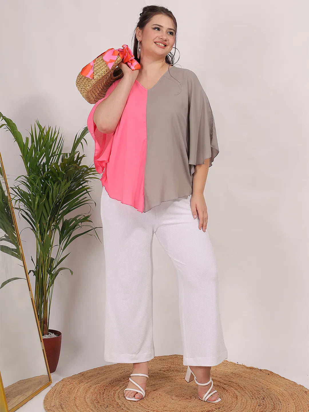 V-Shape Hemline Color Block Kimono Sleeves Top