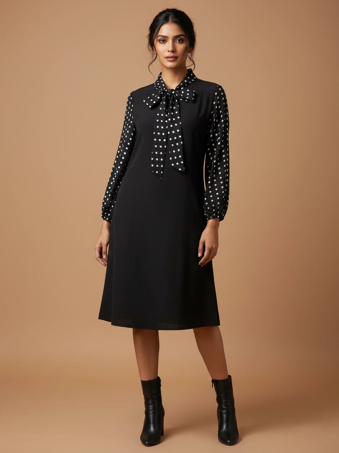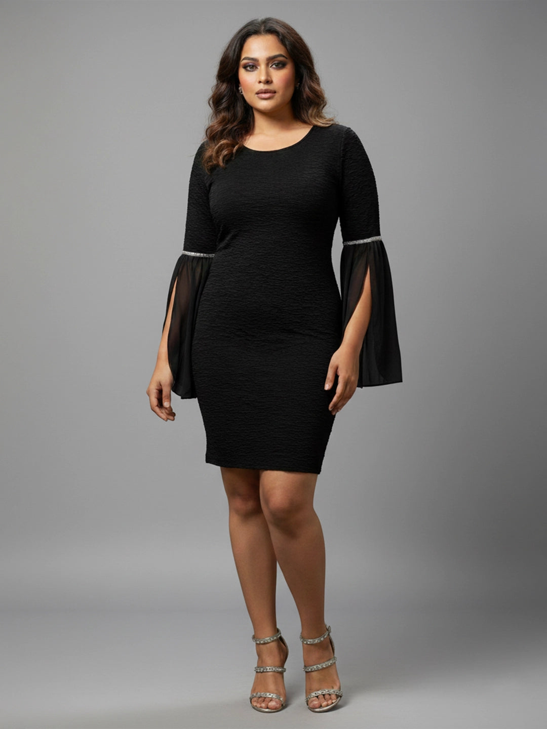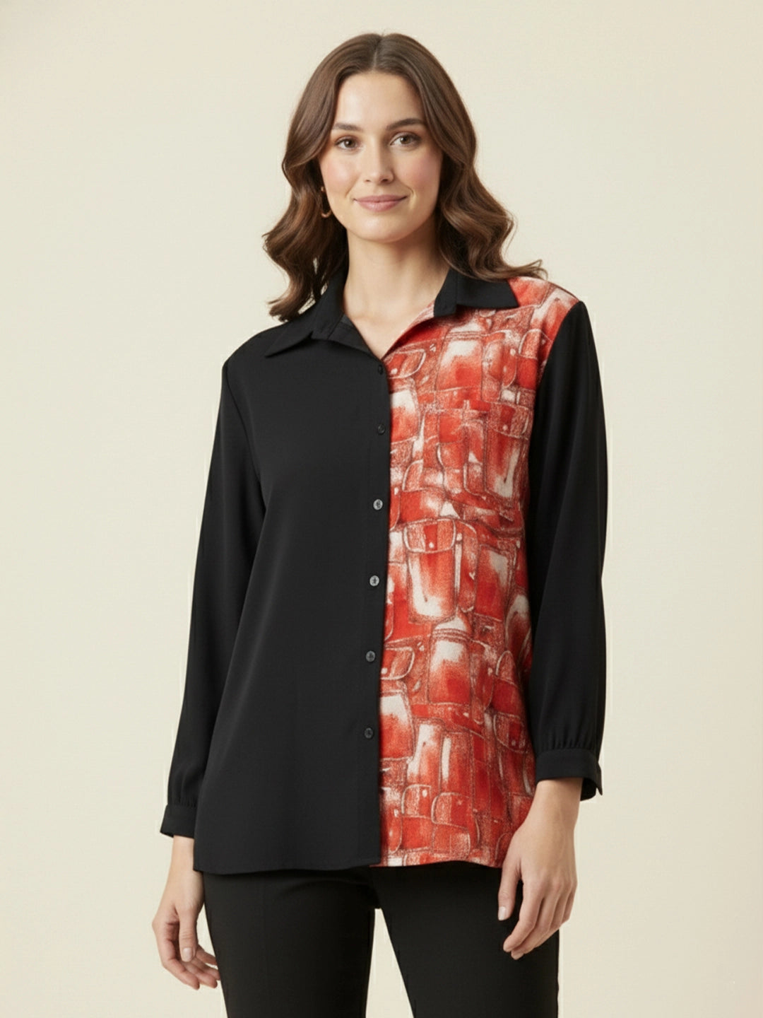 Black Crepe Regular Fit Shirt with Curved Hemline