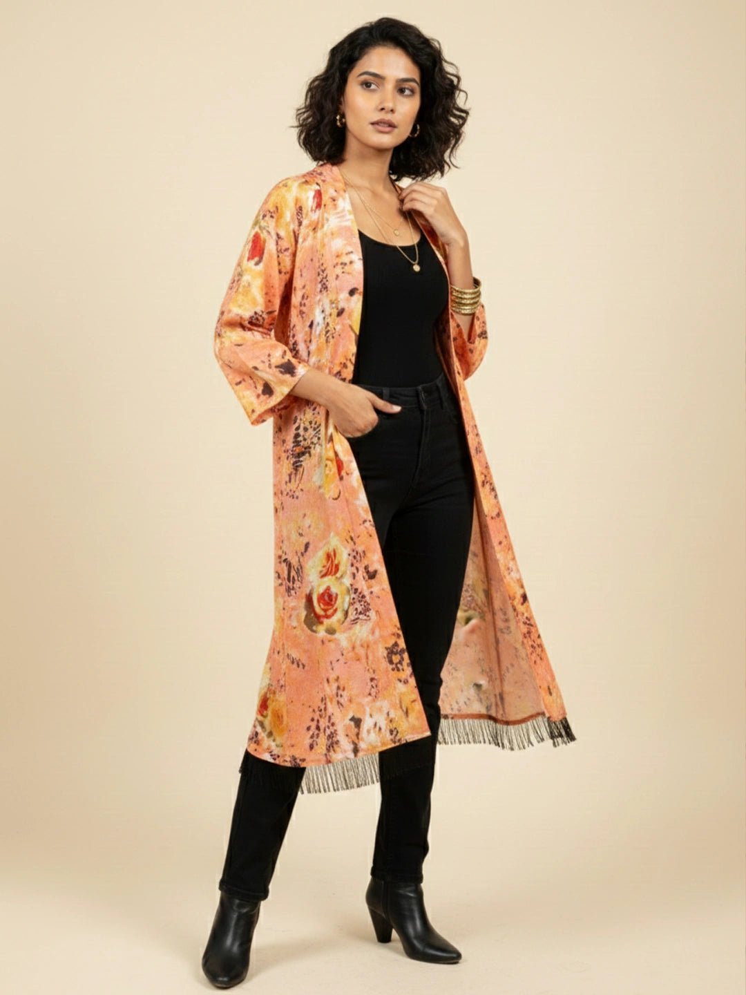 Peach Crepe Regular Fit Shrug with Straight Hemline