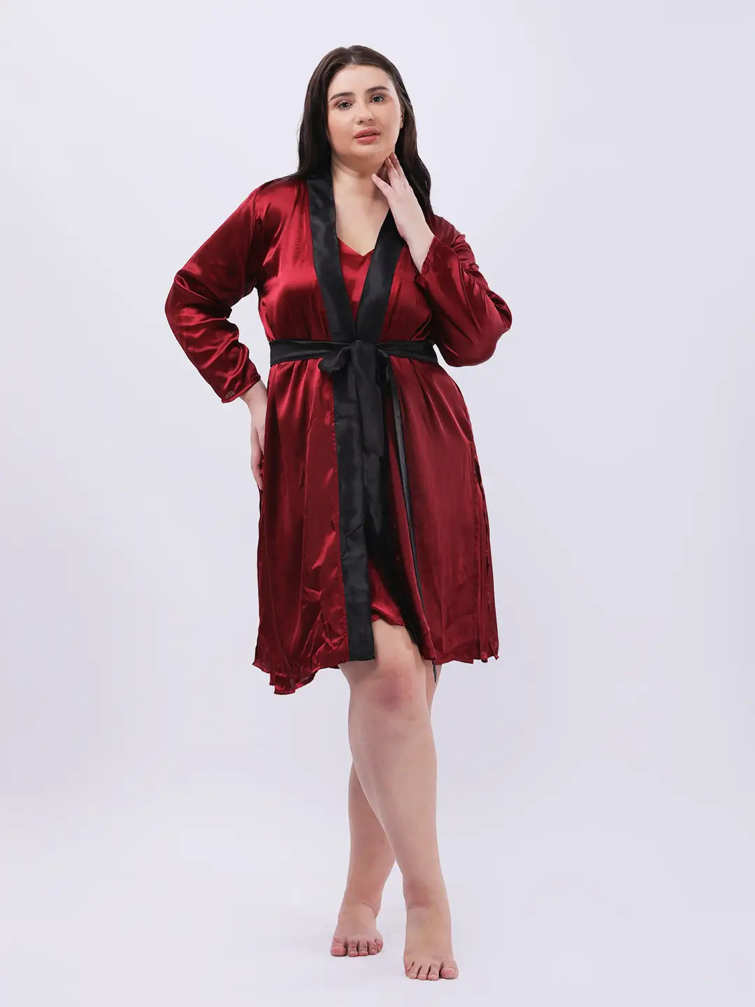 Maroon Satin Loose Fit Kaftan with Asymmetric Hemline