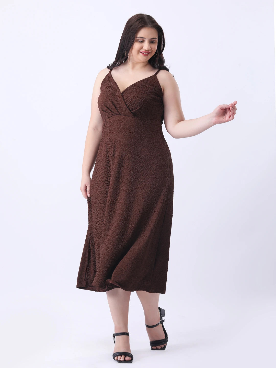 Brown Lycra Slim Fit Dress with Flared Hemline