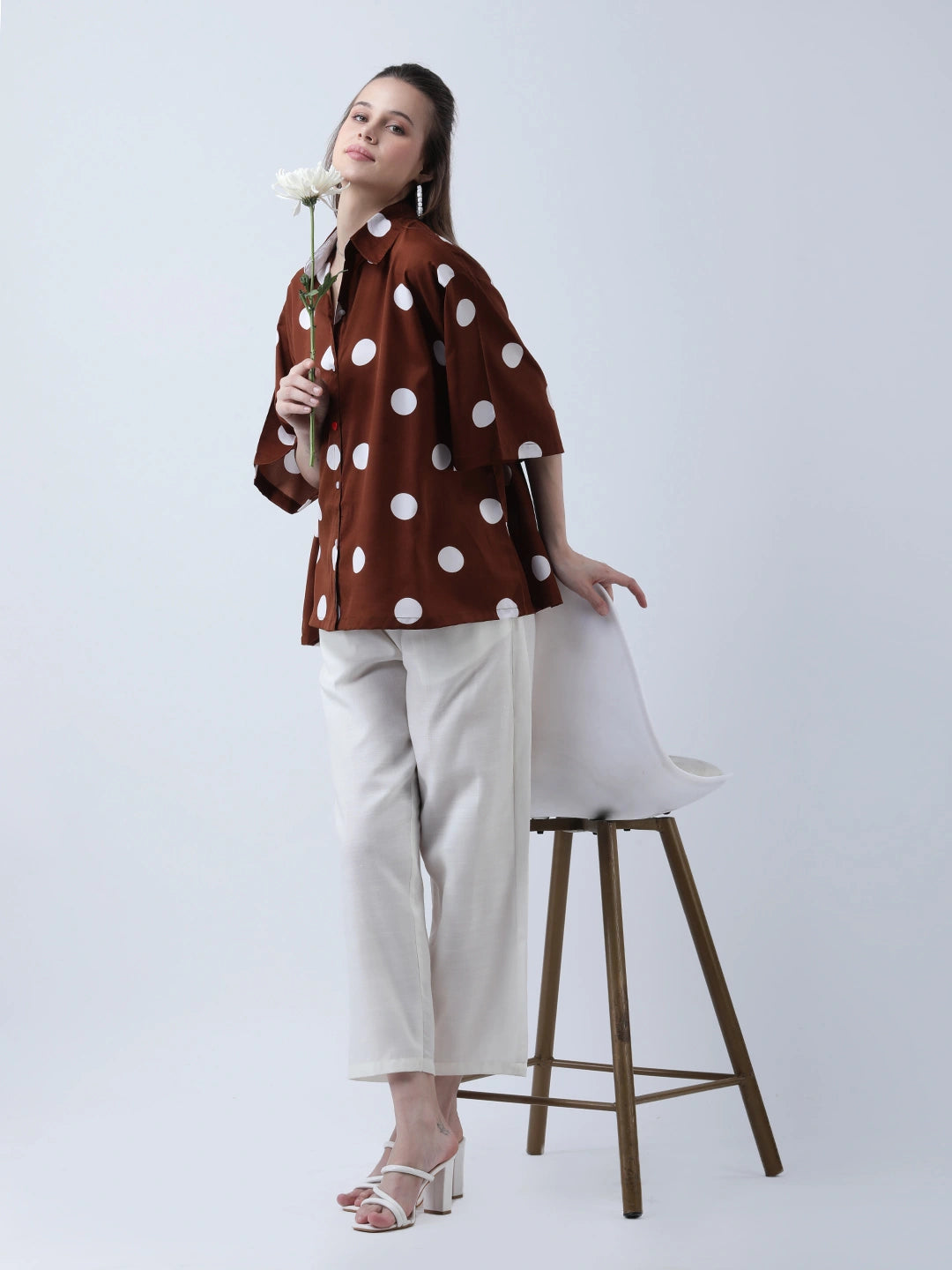 Brown Crepe Loose Fit Shirt with Curved Hemline