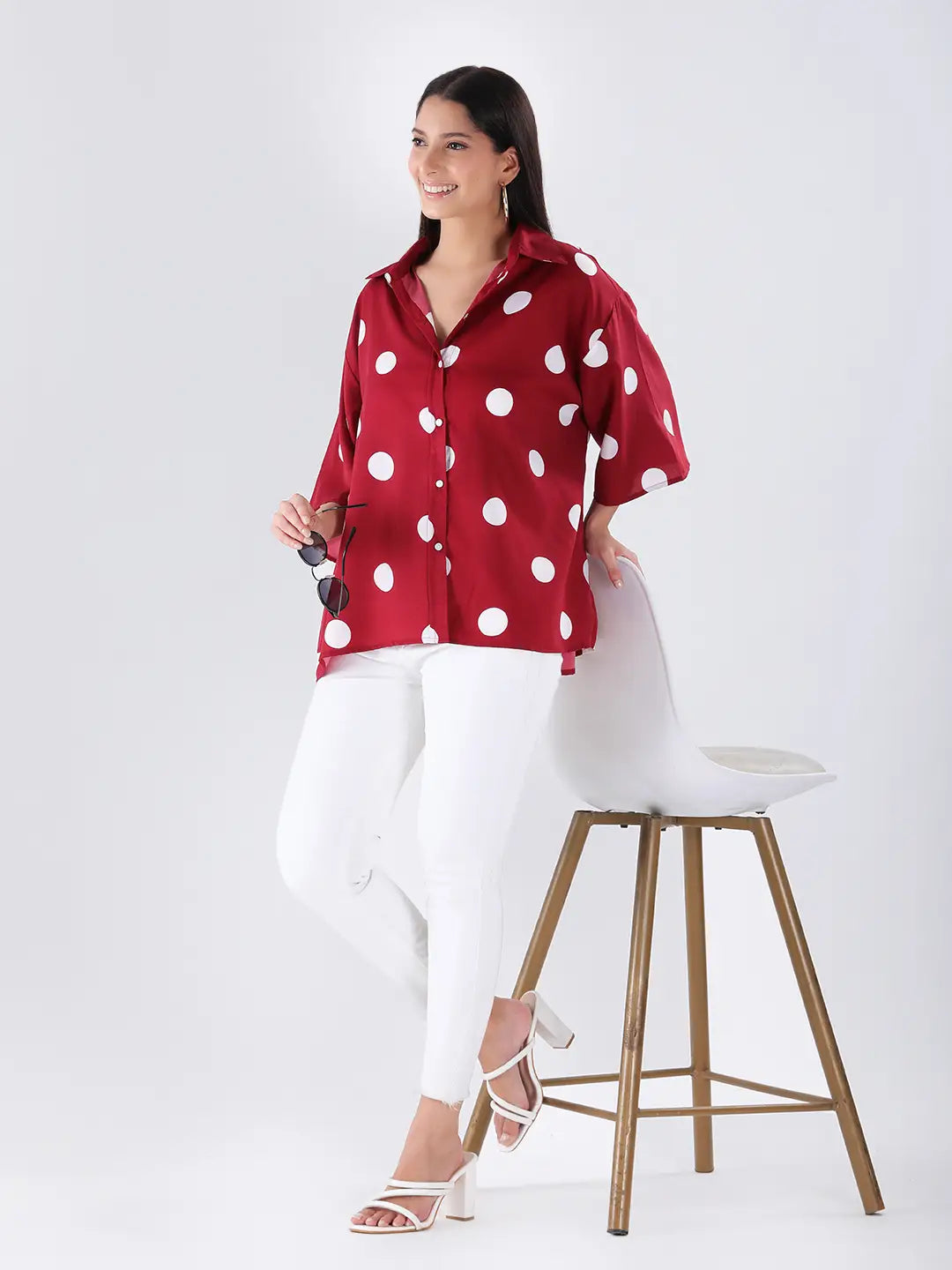 Maroon Cotton Loose Fit Shirt with Curved Hemline