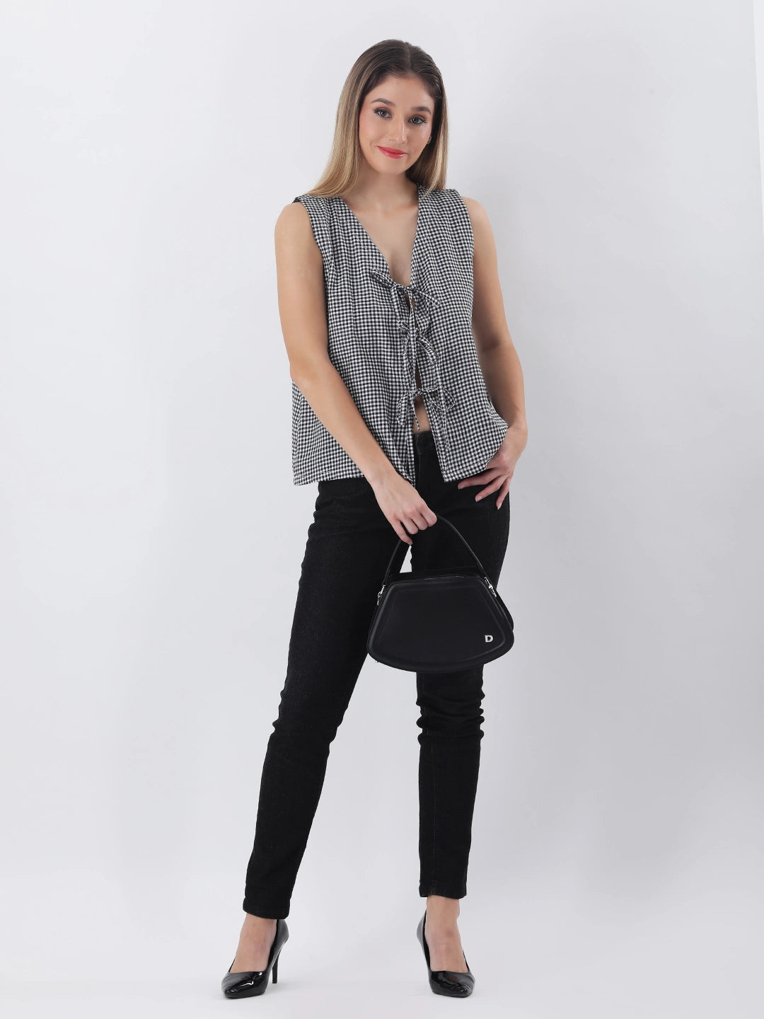 Black and white gingham vest top