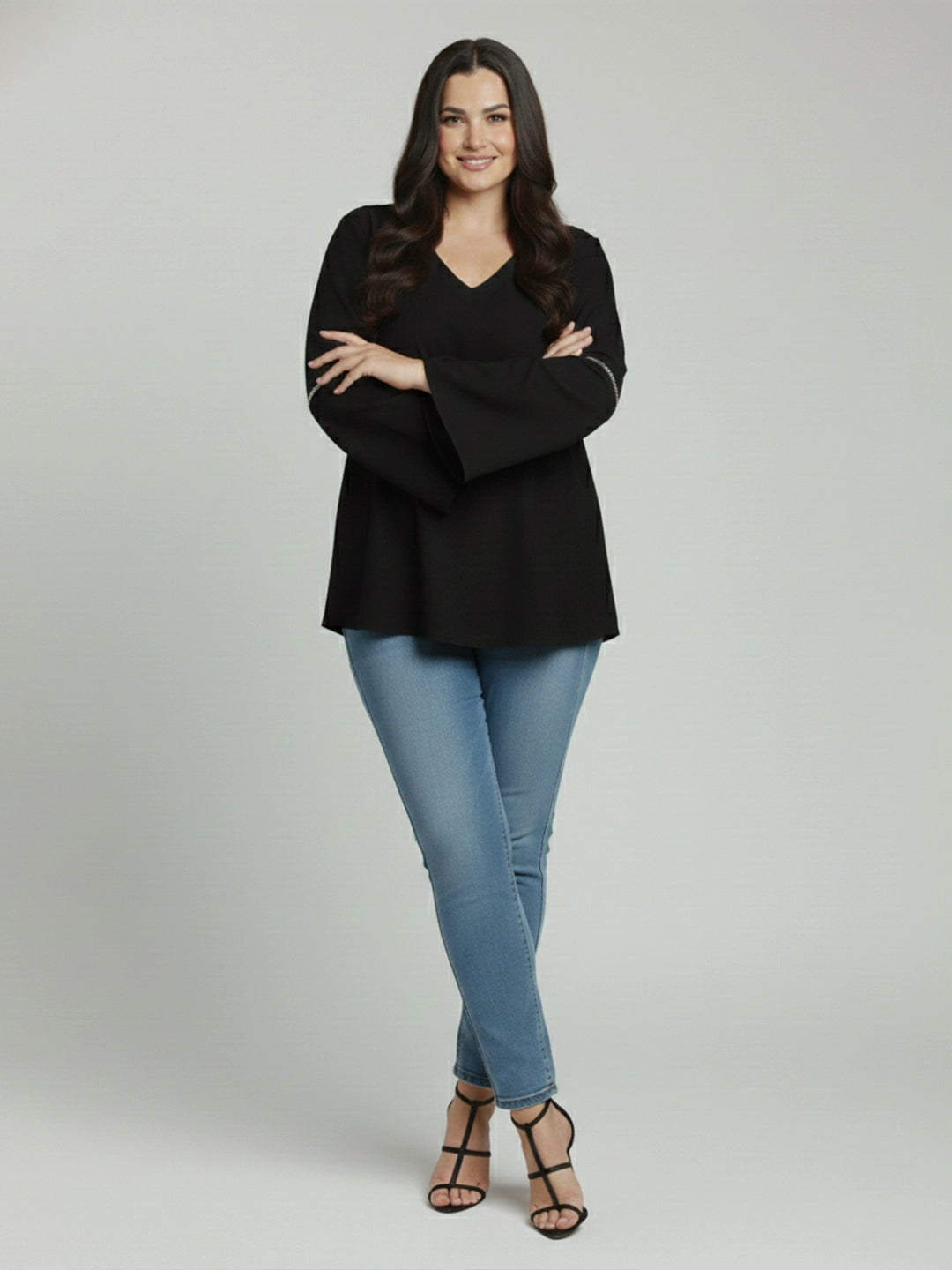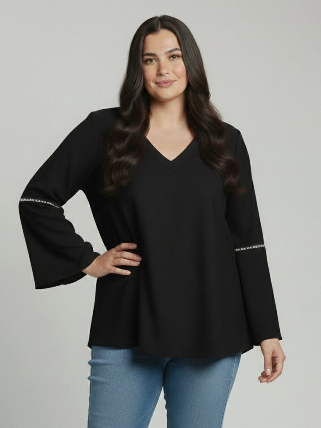 Black rayon V-neck top