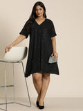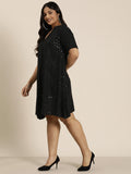 Black sequins schiffli party dress