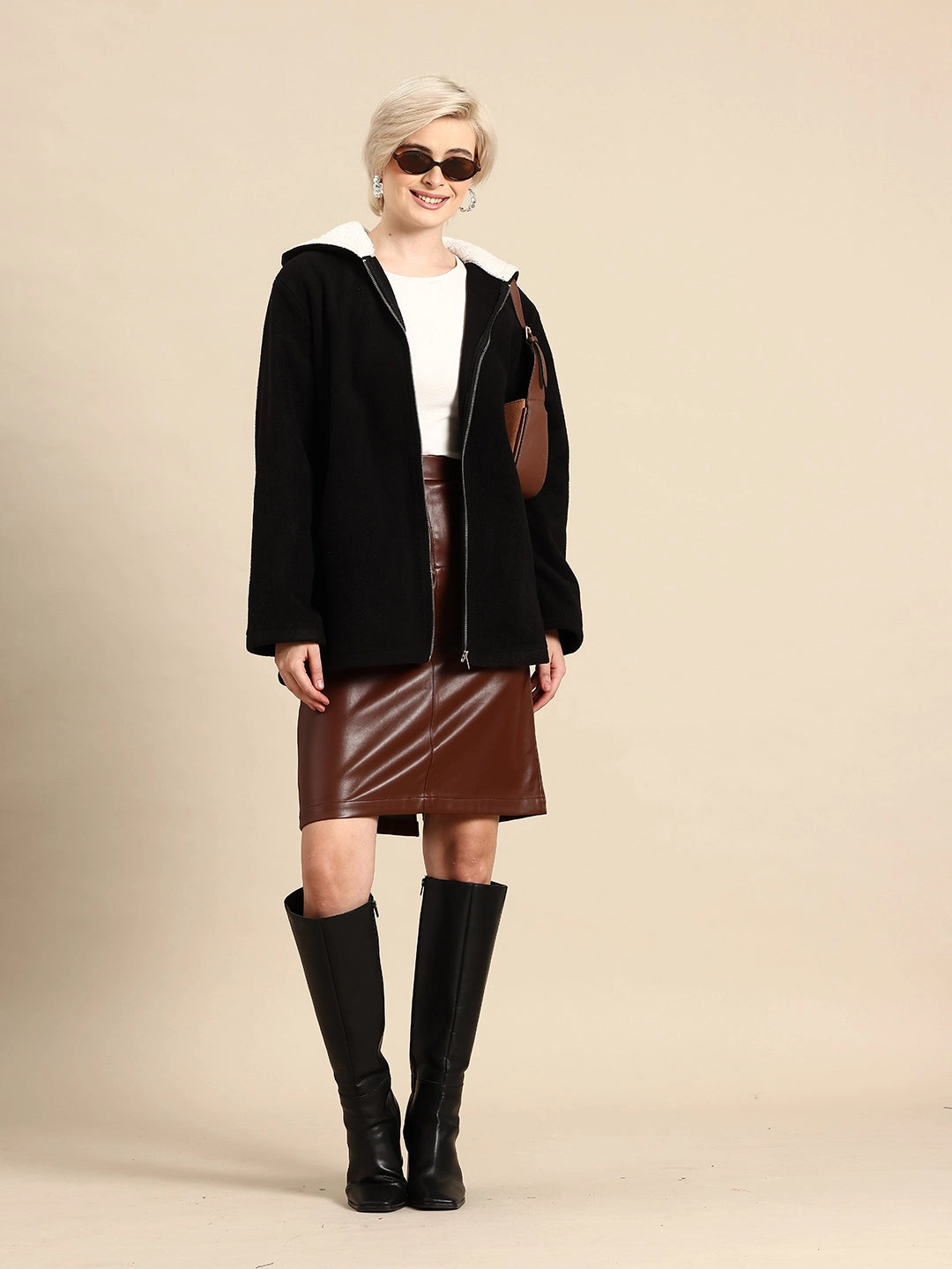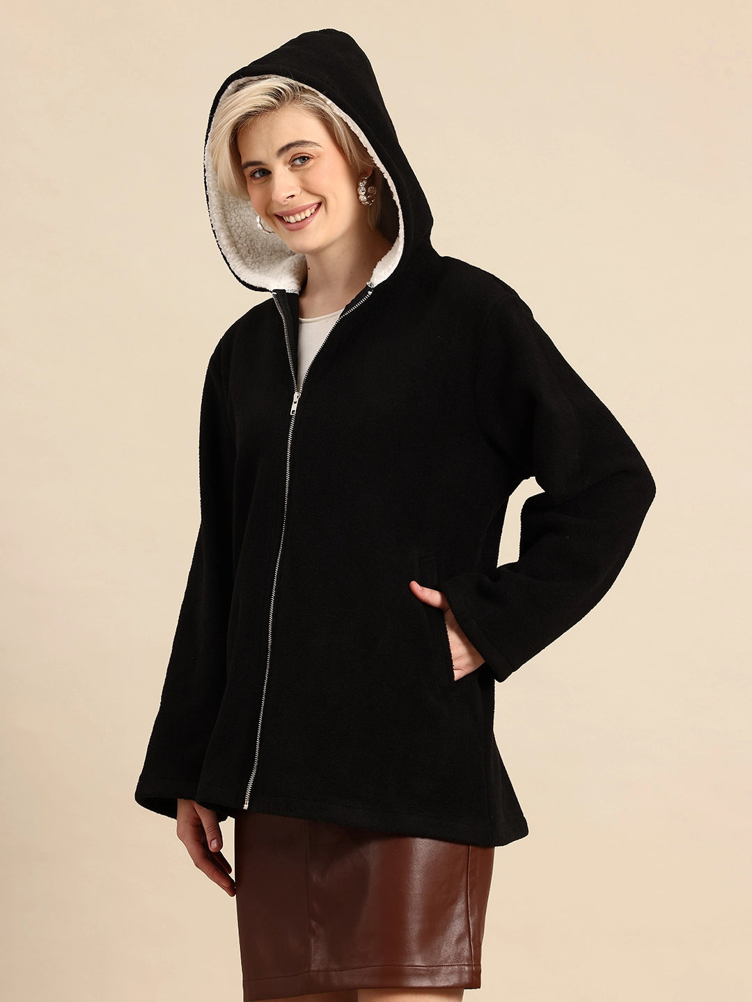Black Sherpa fleece Hoodie with zipper