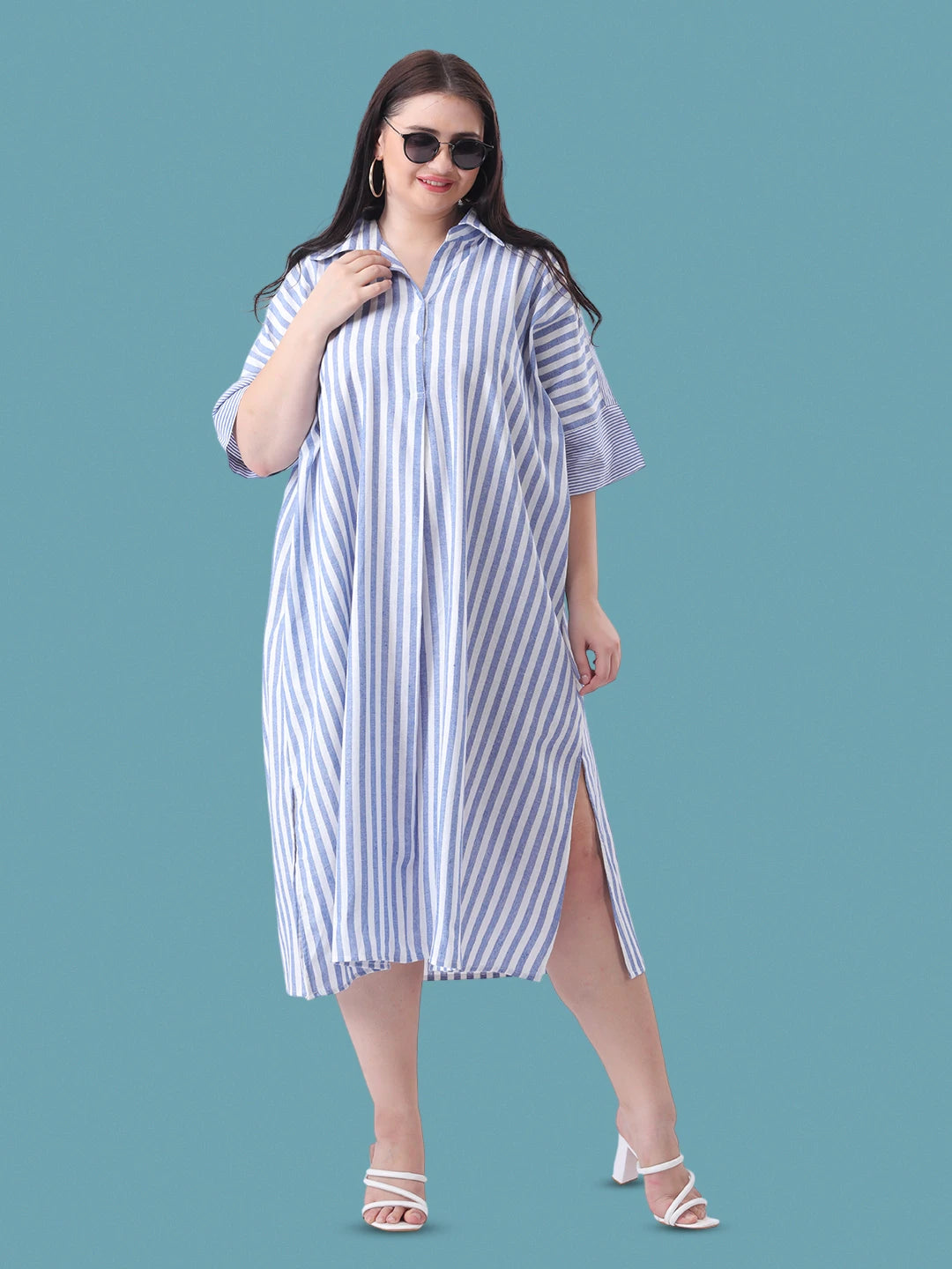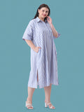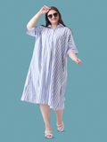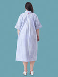 Blue stripe linen oversize dress