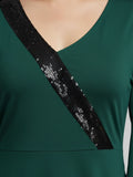 Bottle Green  party  dress with sequins embelishment