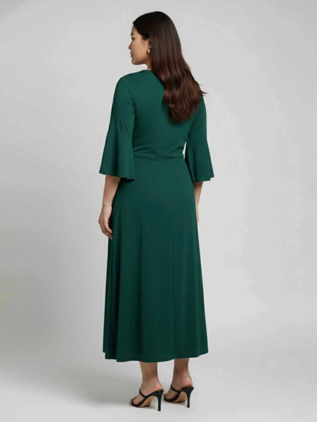 Bottle Green party dress with sequins embelishment