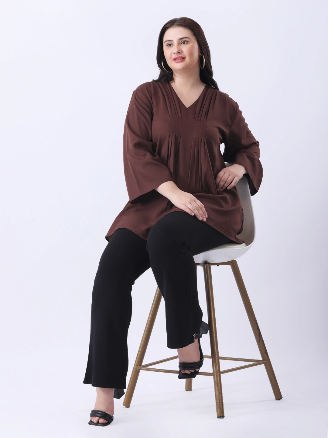 Brown pleated tunic top