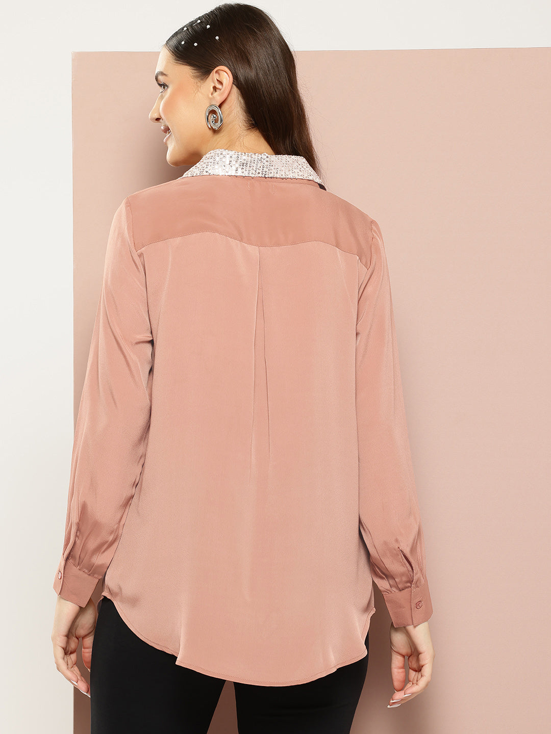 Caramel French crepe Sequins collar Shirt