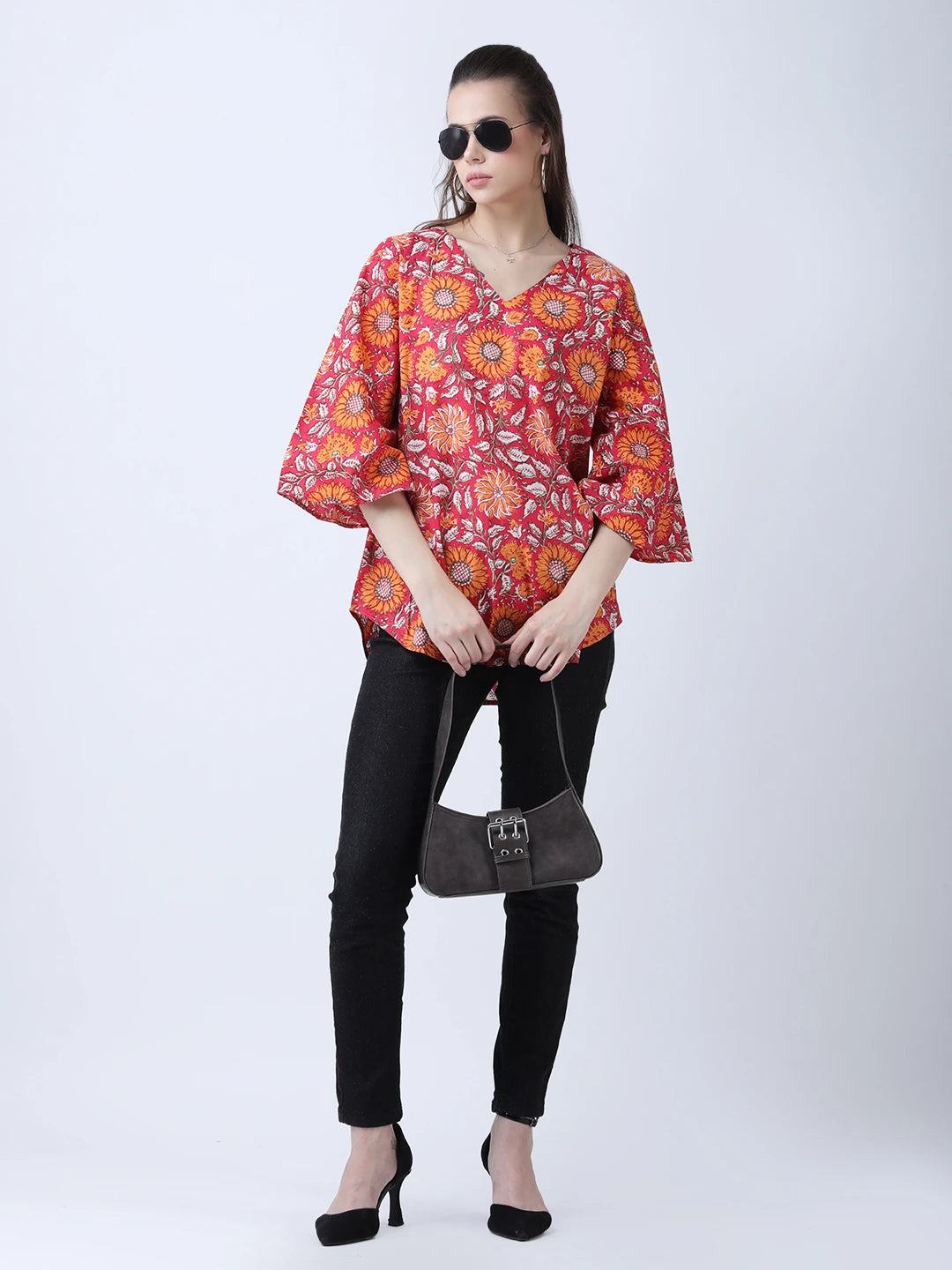 Cotton block print A-line top