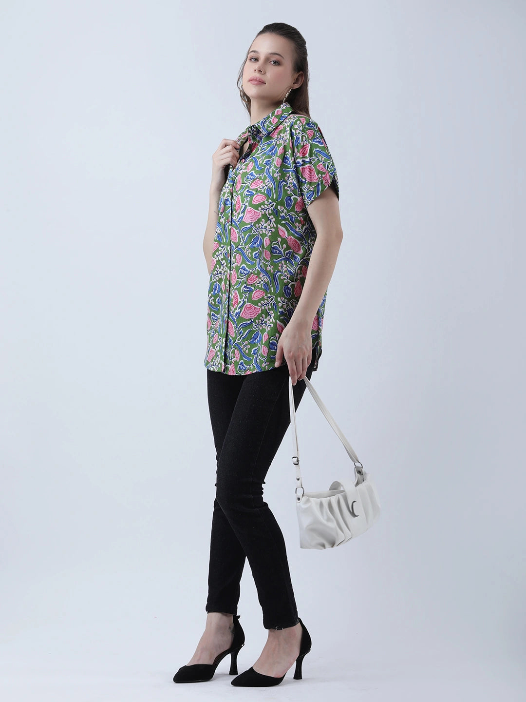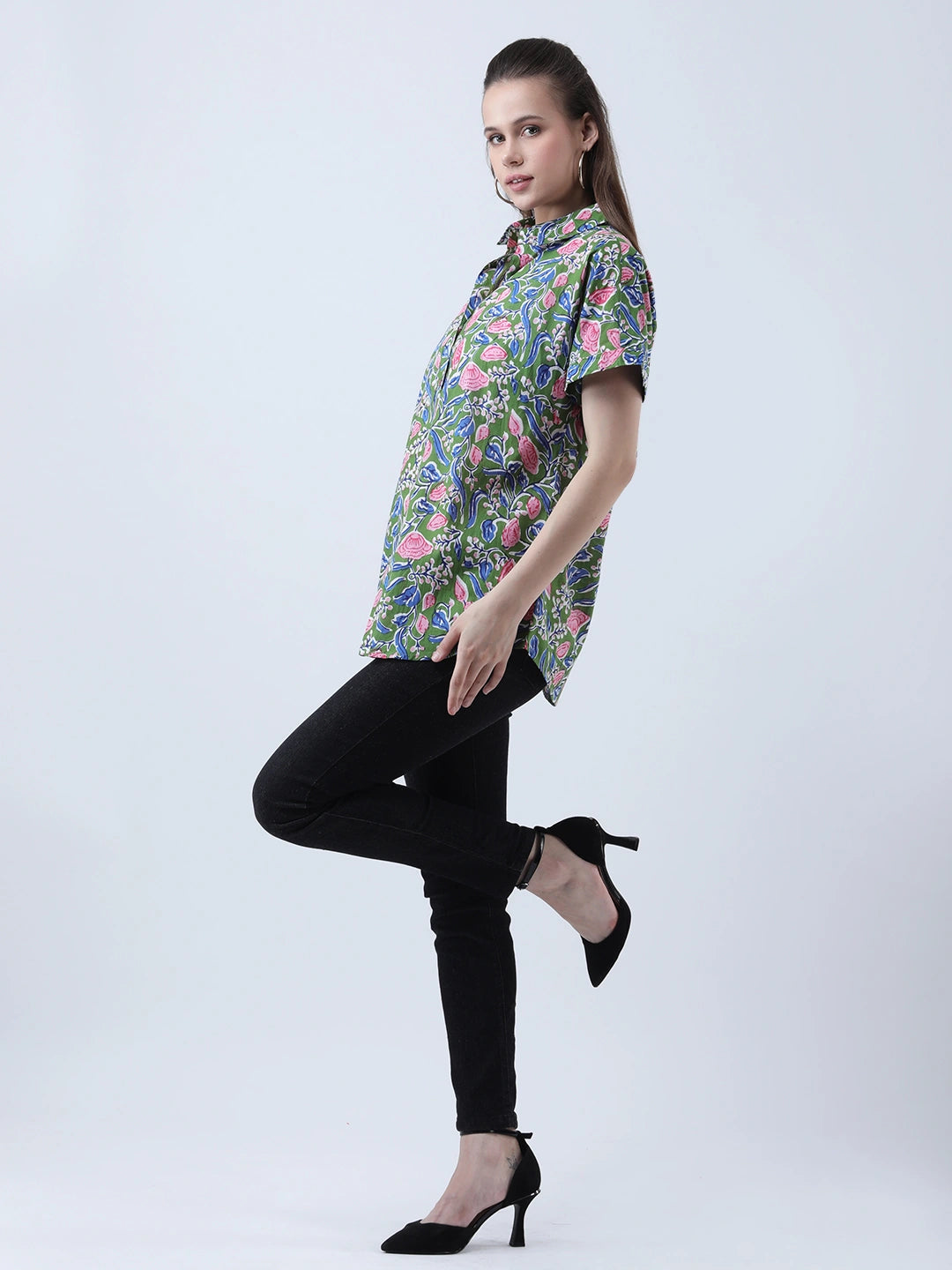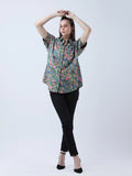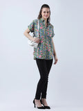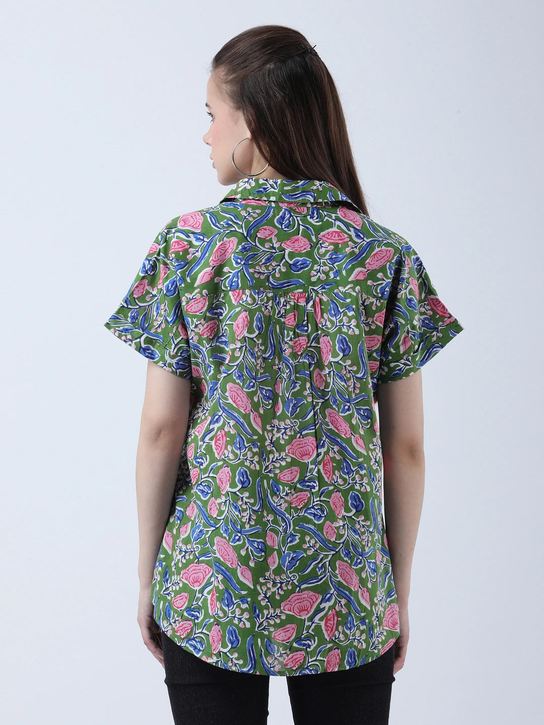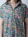 Cotton block print drop shoulder shirt