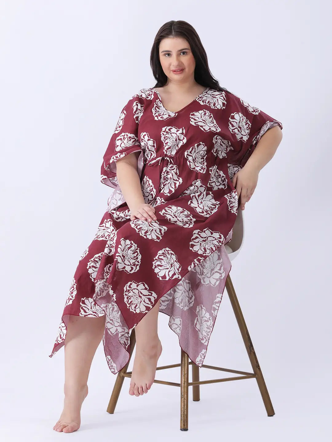 Cotton floral printed long kaftan
