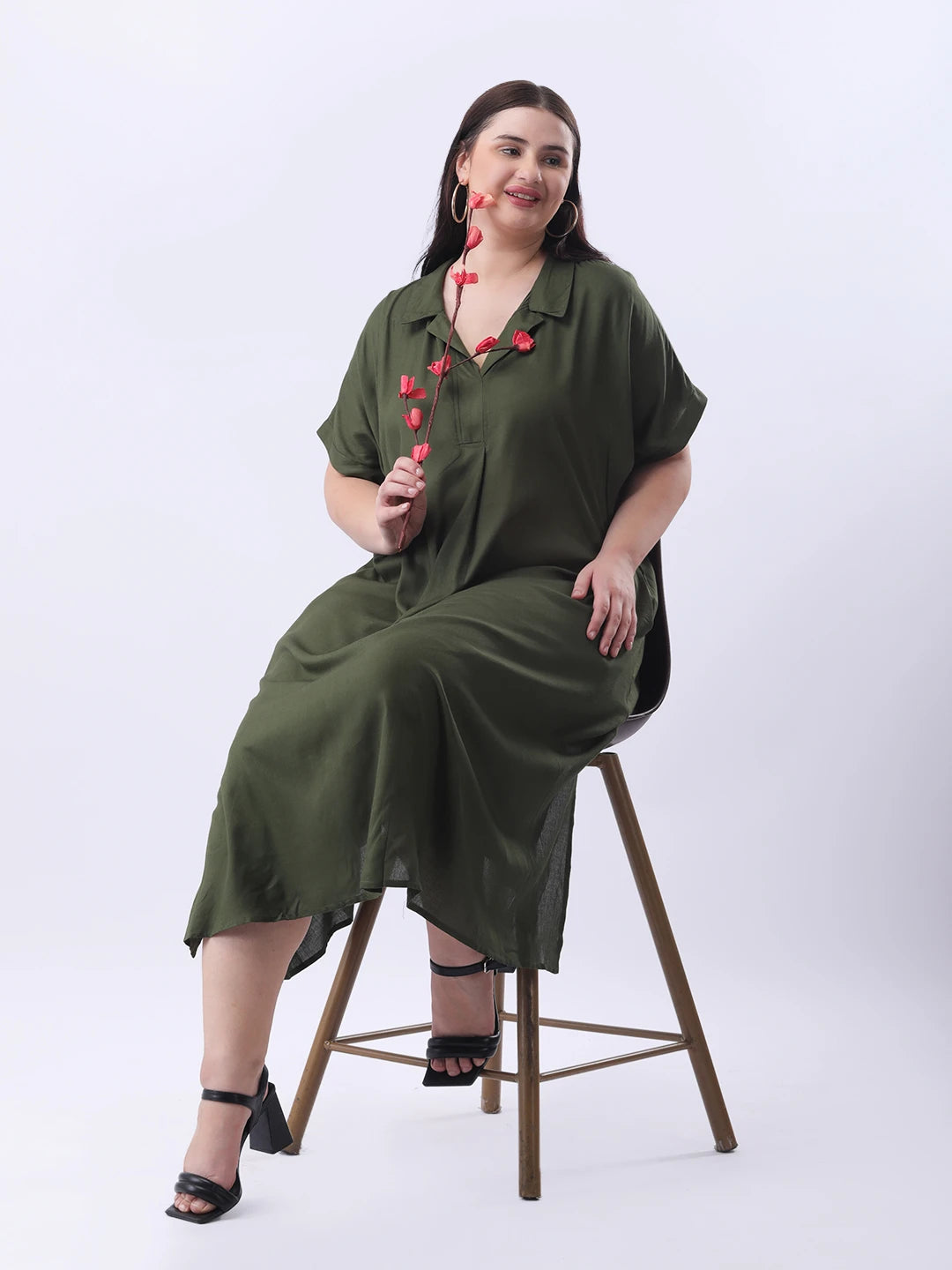Dark olive rayon oversize dress